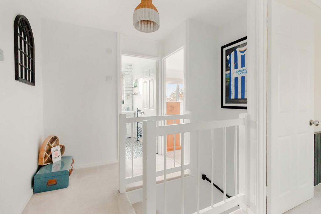 This beautifully finished home has been tastefully renovated by the current owners and features, in brief, on the ground floor: an entrance hall, large and bright kitchen/dining/family room with a new kitchen and patio doors opening to one portion of garden, a generous living room with doors opening to the south facing rear garden. The ground floor benefits from hard flooring and the windows throughout have fitted plantation shutters.