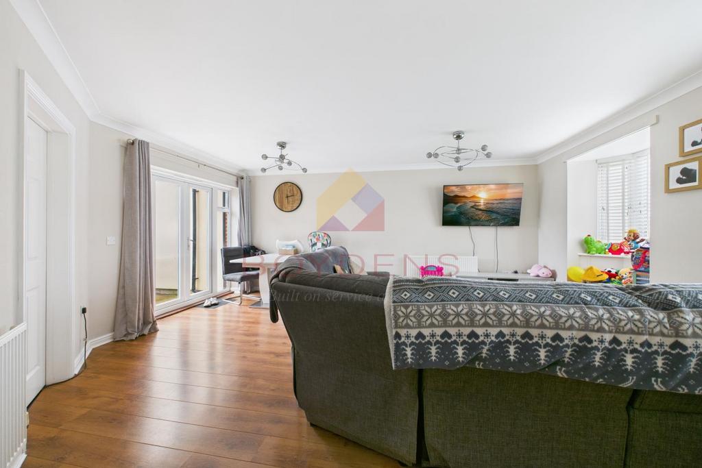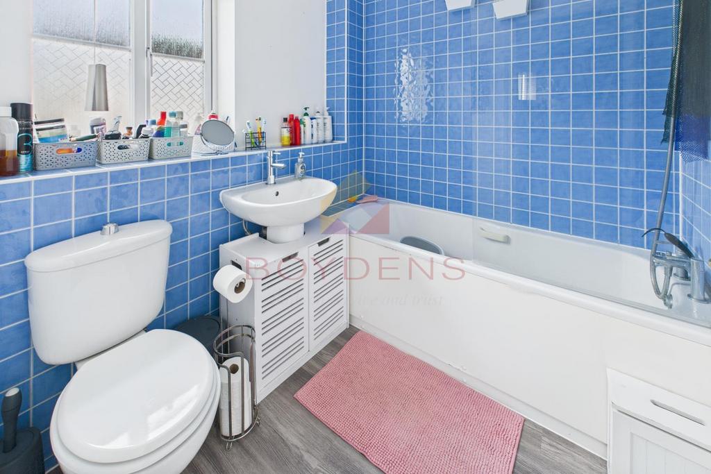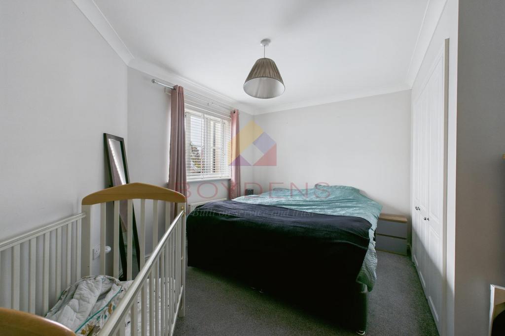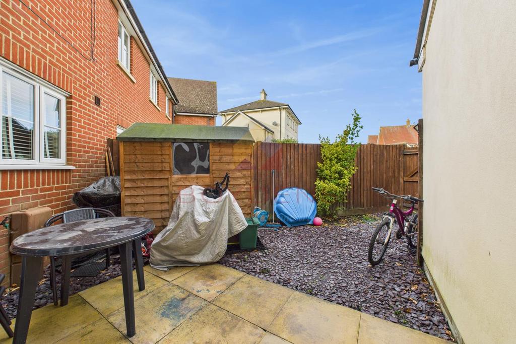 Internally, the accommodation comprises a fitted kitchen and a spacious living room featuring built-in storage and double doors opening onto the rear garden, allowing for plenty of natural light. A convenient downstairs WC completes the ground floor. To the first floor, the property offers two double bedrooms—both benefiting from built-in storage—a rear-facing single bedroom, and a well-proportioned family bathroom.