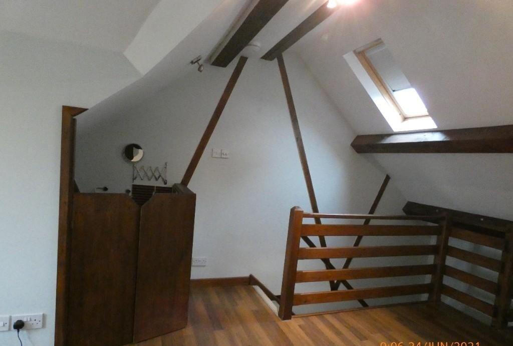 Built in cupboard housing the water tank and shelving, Upvc window to the rear aspect, laminate wood flooring.