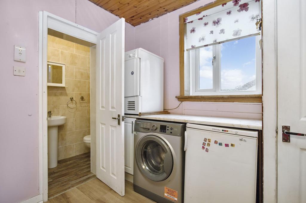 Beyond the lounge, a practical utility room offers seamless access to the down stairs shower room. The utility room offers extra storage and features an Electrolux upright freezer, a Hotpoint washing machine and an Indesit tumble dryer which are included in the sale. Separately, the shower room is fully tiled and features a two-piece white suite with a single shower cubicle.
