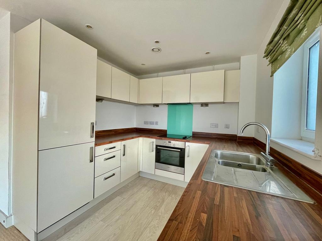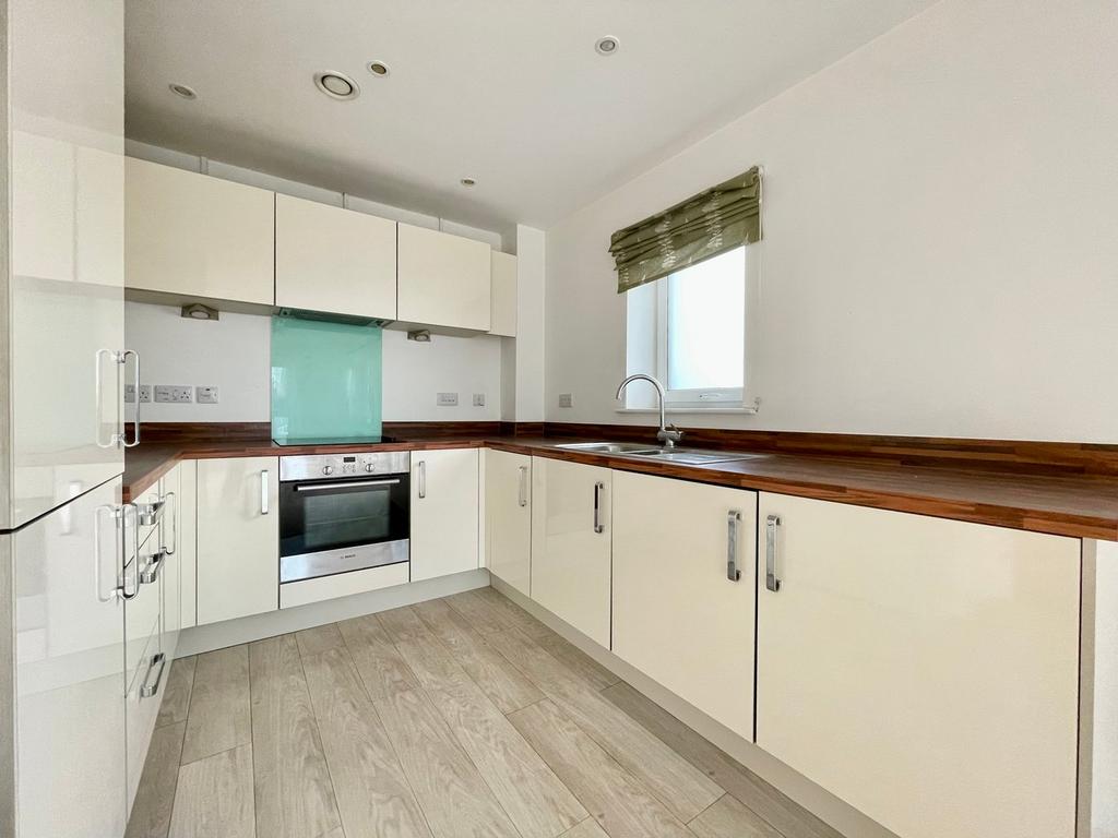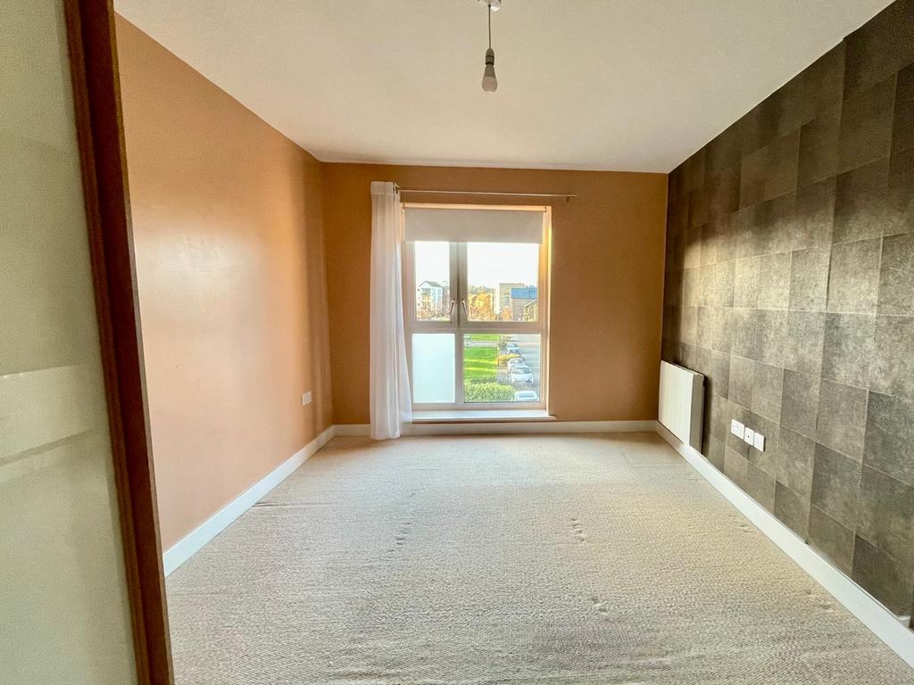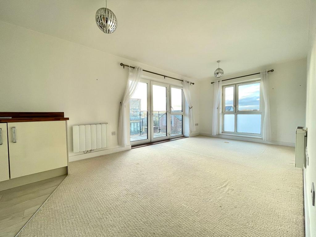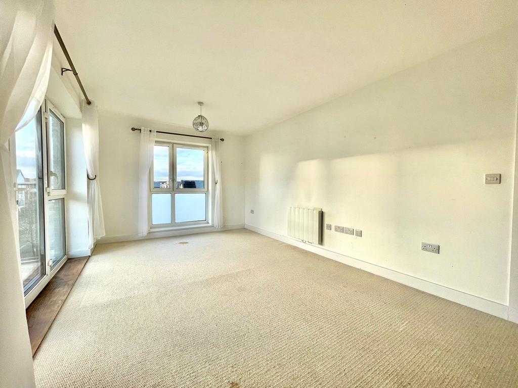 The accommodation is accessed via a welcoming entrance hall with useful storage, leading through to the open plan kitchen, sitting and dining area. This space is well proportioned and naturally bright, with the kitchen arranged to one side offering a practical layout and good worktop space. Double doors open directly onto the large balcony, providing an ideal extension of the living space. The bedroom is a comfortable double with built-in wardrobe storage, while the apartment is completed by a modern family bathroom.