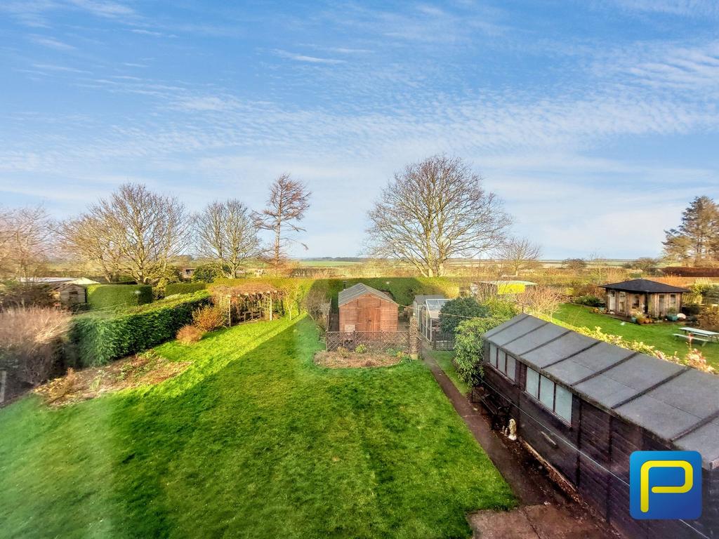 Views of the countryside beyond and large workshop and shed with log burner and greenhouse.