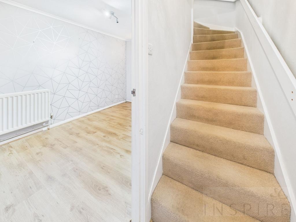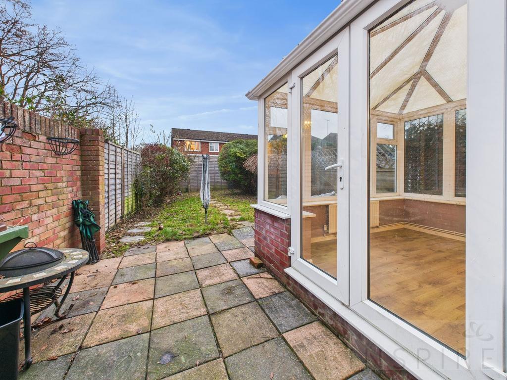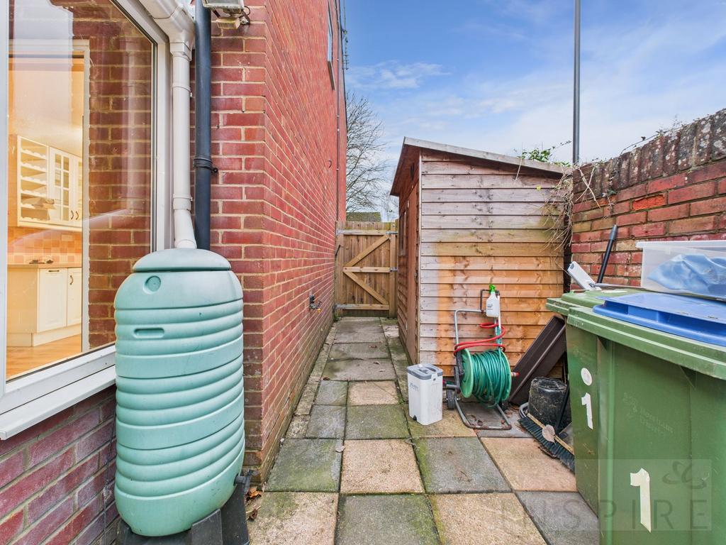 Additional features add to the comfort and appeal of this home. The conservatory serves as a versatile space for relaxation or entertaining, with sliding or French doors opening to a charming, enclosed garden. The garden itself boasts a mix of lawn and paved patio area, perfect for outdoor dining, entertaining guests, or enjoying private family time. Fenced boundaries and mature shrubs ensure seclusion and tranquillity. Practical touches include a secure outdoor storage shed, ideal for garden tools or bicycles, and a paved pathway with a side access gate for convenience. The property’s neutral décor and modern finishes throughout provide a blank canvas for personalisation, while features such as elegant chandelier lighting, built-in shelving, and geometric feature walls lend a touch of sophistication and contemporary style. With efficient heating, attractive flooring, and thoughtfully integrated storage, this terraced house combines comfort, functionality, and modern design, making it a compelling choice for first-time buyers, young professionals, or small families seeking a move-in ready home with excellent indoor and outdoor living spaces.