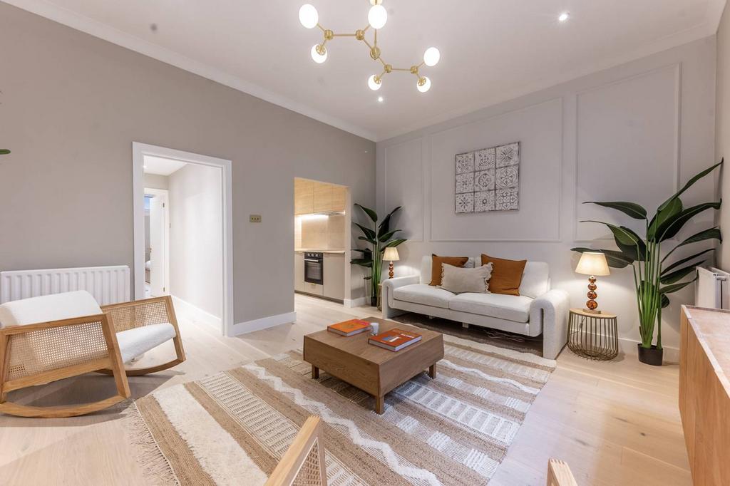 SHORT LET. Beautifully presented throughout, this stunning 2 bedroom lower ground floor benefits from a private entrance, en-suites to both bedrooms, sleek modern kitchen with dining space and an excellent location.