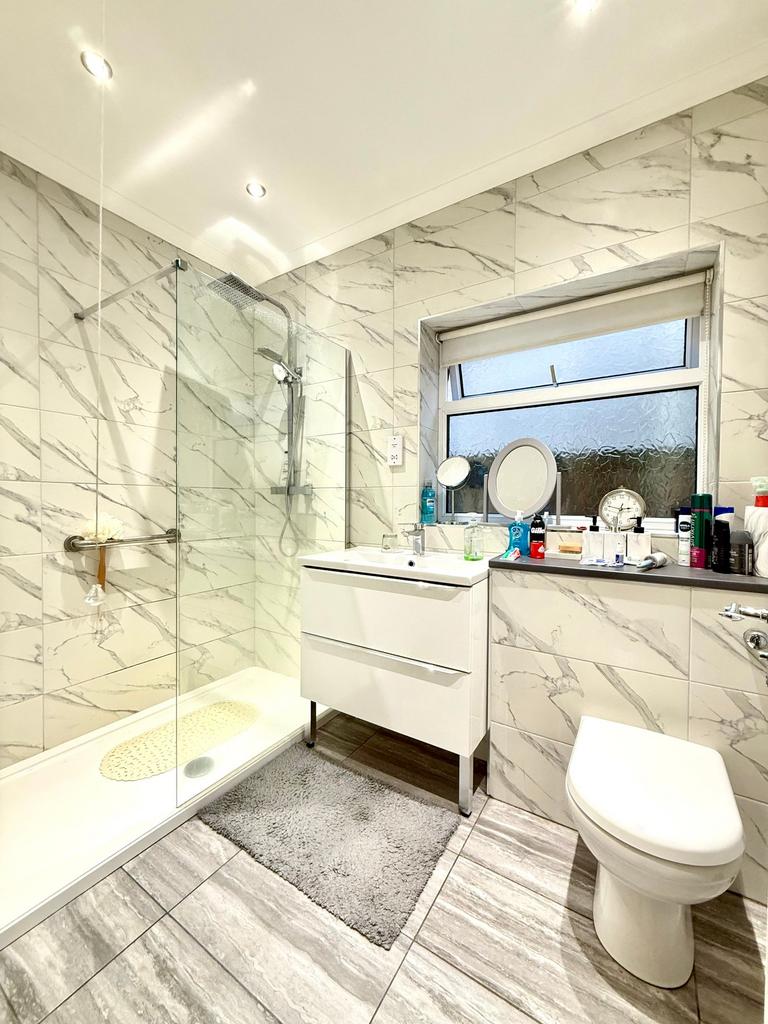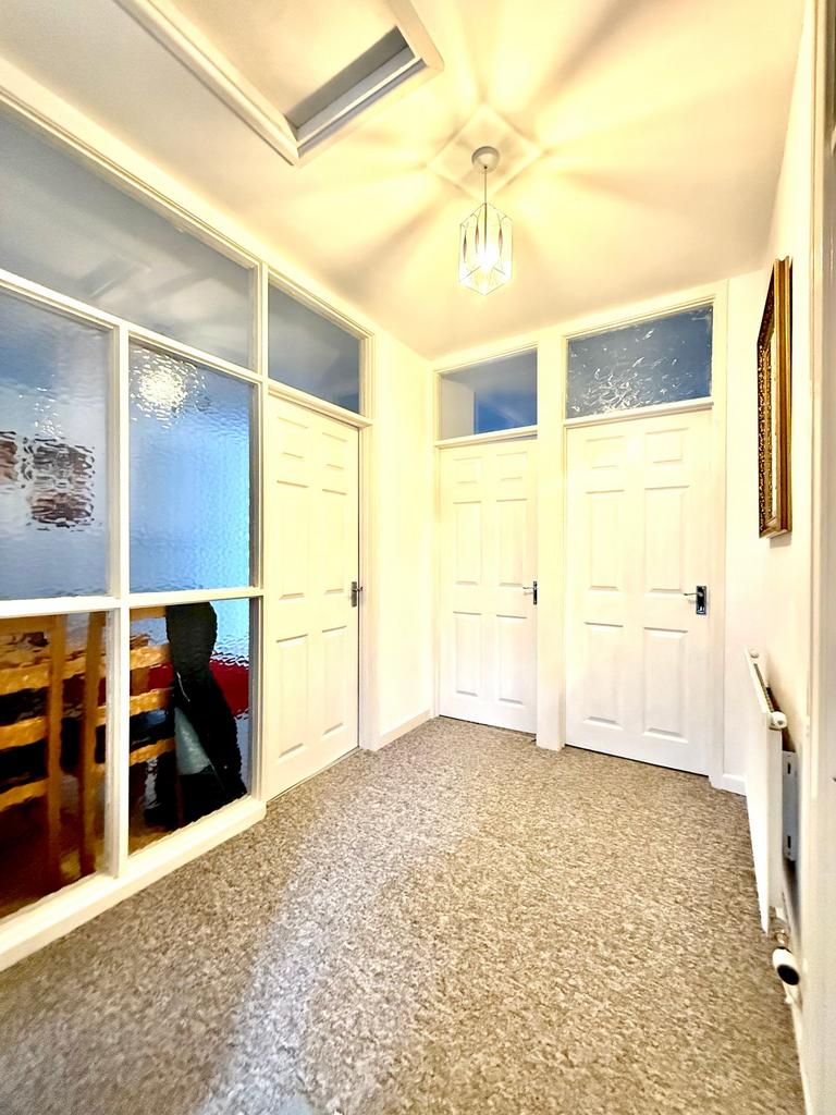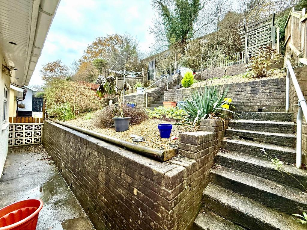 Offering well presented, spacious living accommodation briefly comprising: steps up to the front entrance porch, living room with views, large inner hallway with doors off to, modern kitchen with door to the garden, refitted shower room, two double bedrooms and further reception room/bedroom 3. Outside, to the front is a driveway and garage with steps up to front door and side gate. To the rear is a tiered garden with steps up to patio area enjoying views.