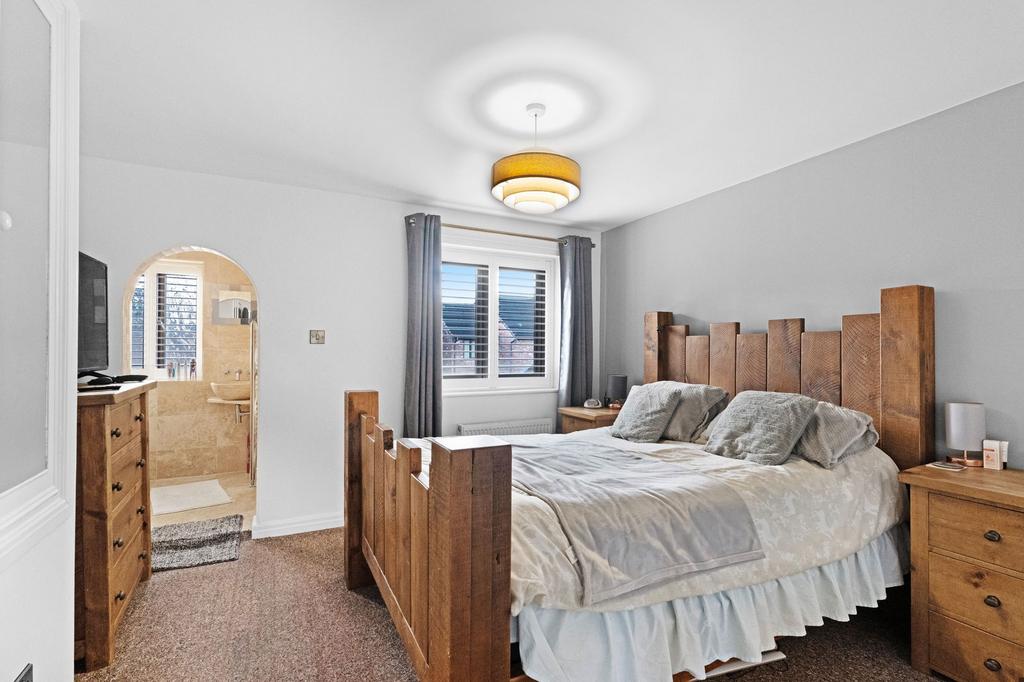 The main bedroom enjoys a pleasant front-facing position and benefits from fitted wardrobes and a modern en-suite shower room. The en-suite is finished in a wet-room style with heated towel rail and contemporary fittings.