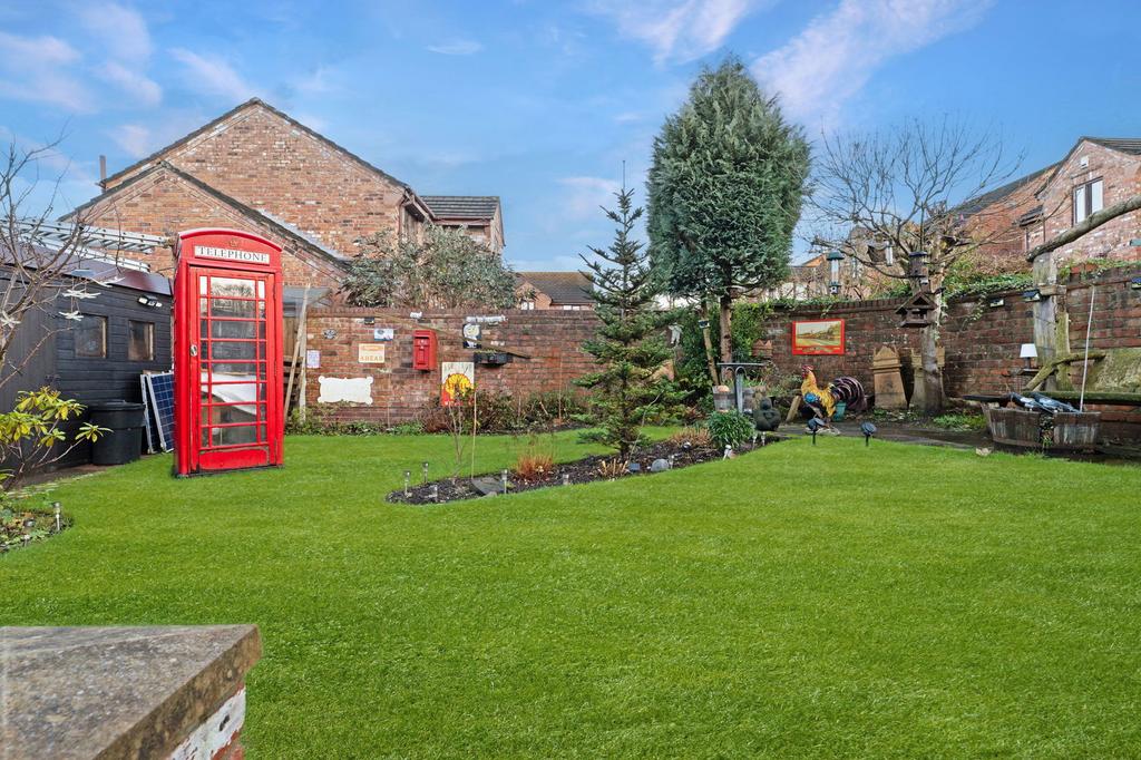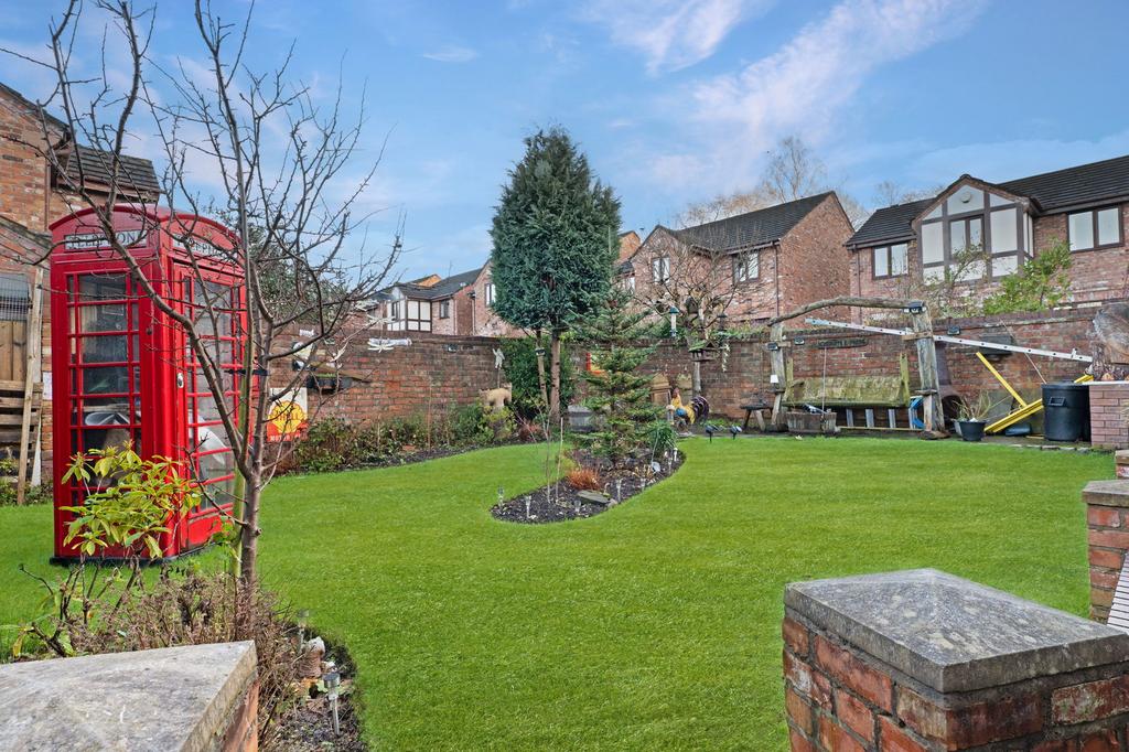 Externally, the property is approached via a block-paved driveway providing parking for several vehicles and an electric car charging point. Gated side access leads to the fully enclosed rear garden, which is mainly laid to lawn with paved pathways and a stone-flagged patio — ideal for outdoor dining, play and entertaining. Subtle garden lighting extends use into the evenings, while the air source heat pump is positioned discreetly to the side.