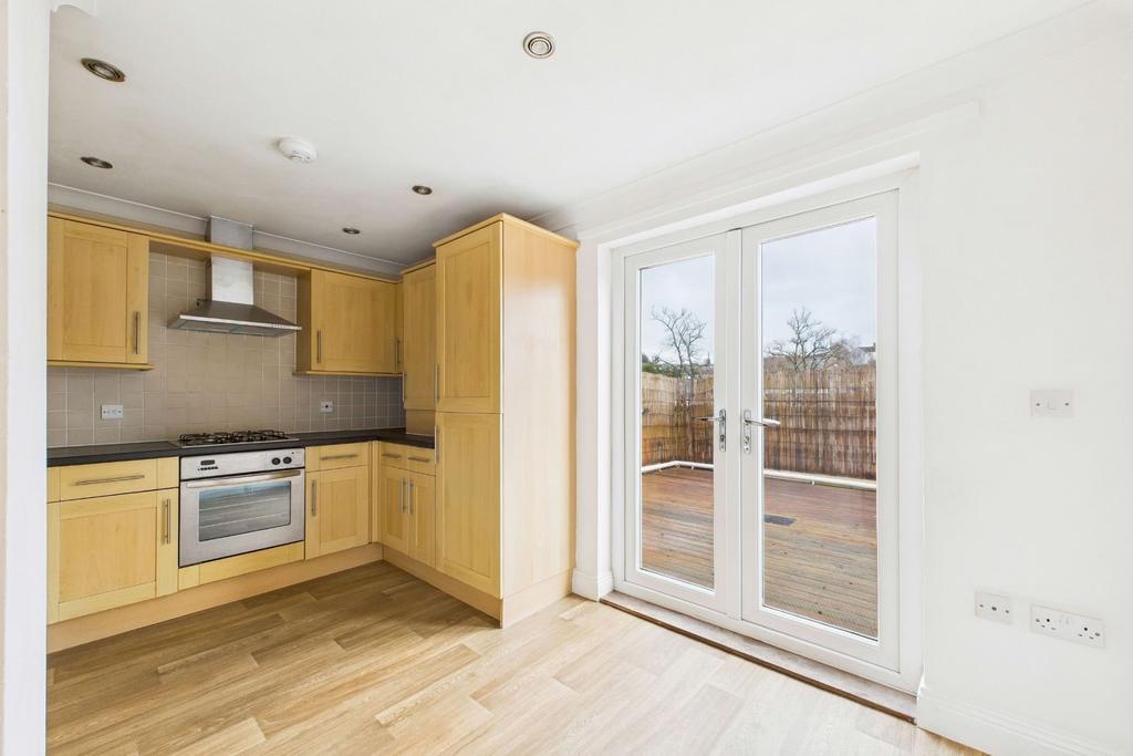 The ground floor comprises a spacious kitchen/breakfast room fitted with an integrated oven and hob, along with an integrated fridge/freezer. From here, the kitchen opens directly onto a rear decked garden, providing a low-maintenance outdoor space ideal for practical day-to-day use. Completing the ground floor is a cloakroom off the entrance hallway.