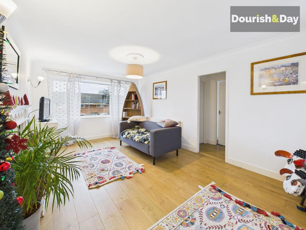 The flat is accessed via a well-kept communal entrance, leading up to a private front door and into a welcoming entrance hallway. From here, the layout flows comfortably and makes great use of the space. To the left sits the bathroom, fitted with a white suite and a shower over the bath, offering a practical layout with scope to personalise if desired.