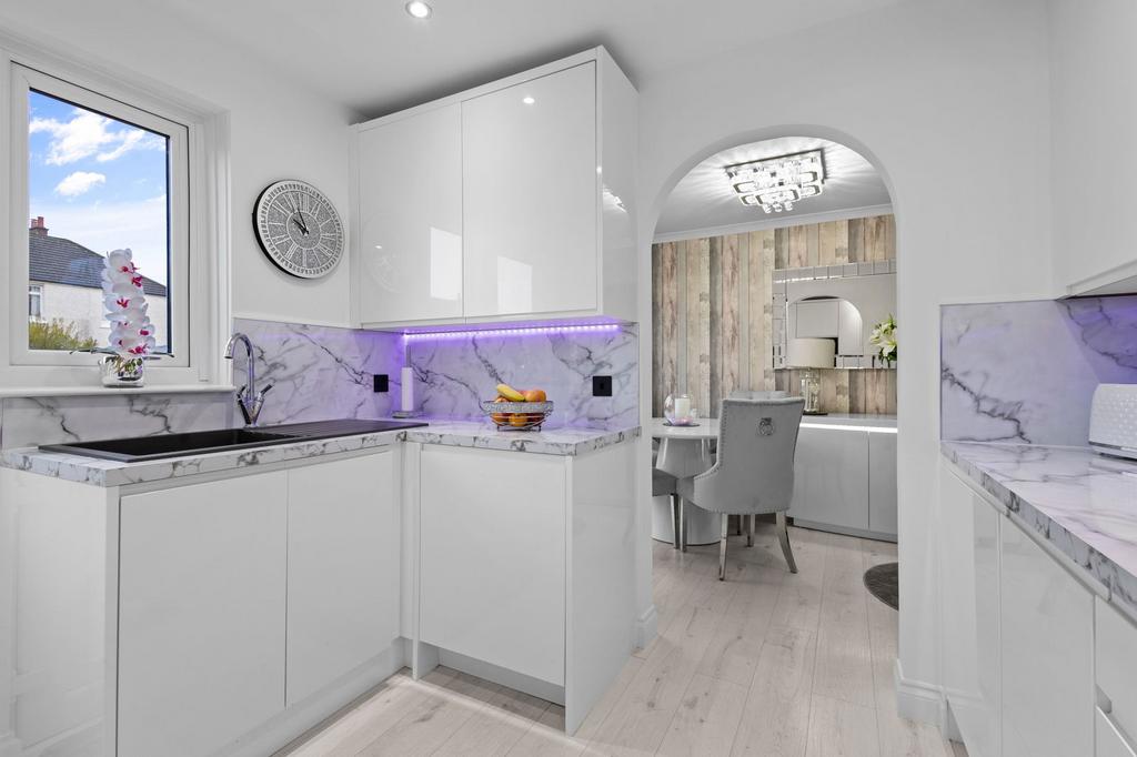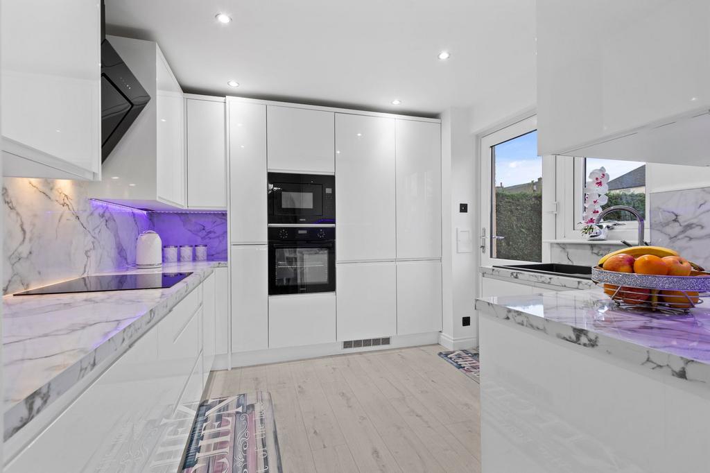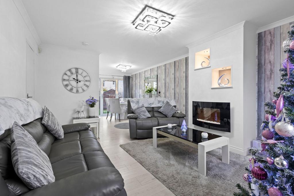 Step inside to discover a welcoming entrance hall providing access to the well-proportioned ground floor accommodation. The spacious open plan living / dining room creates an inviting space for family relaxation, benefiting from excellent natural light, with convenient patio door giving access to the rear garden. The fitted kitchen offers ample space for dining and everyday family life, with modern floor and wall-mounted units providing practical storage solutions.