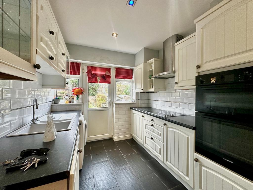The property itself offers a warm and welcoming layout. The lounge is bright and inviting, featuring sliding doors that open onto the spacious rear garden and a cosy gas fireplace that adds a charming focal point to the room. The kitchen is well arranged with plenty of practical workspace and storage, making everyday living comfortable and convenient.