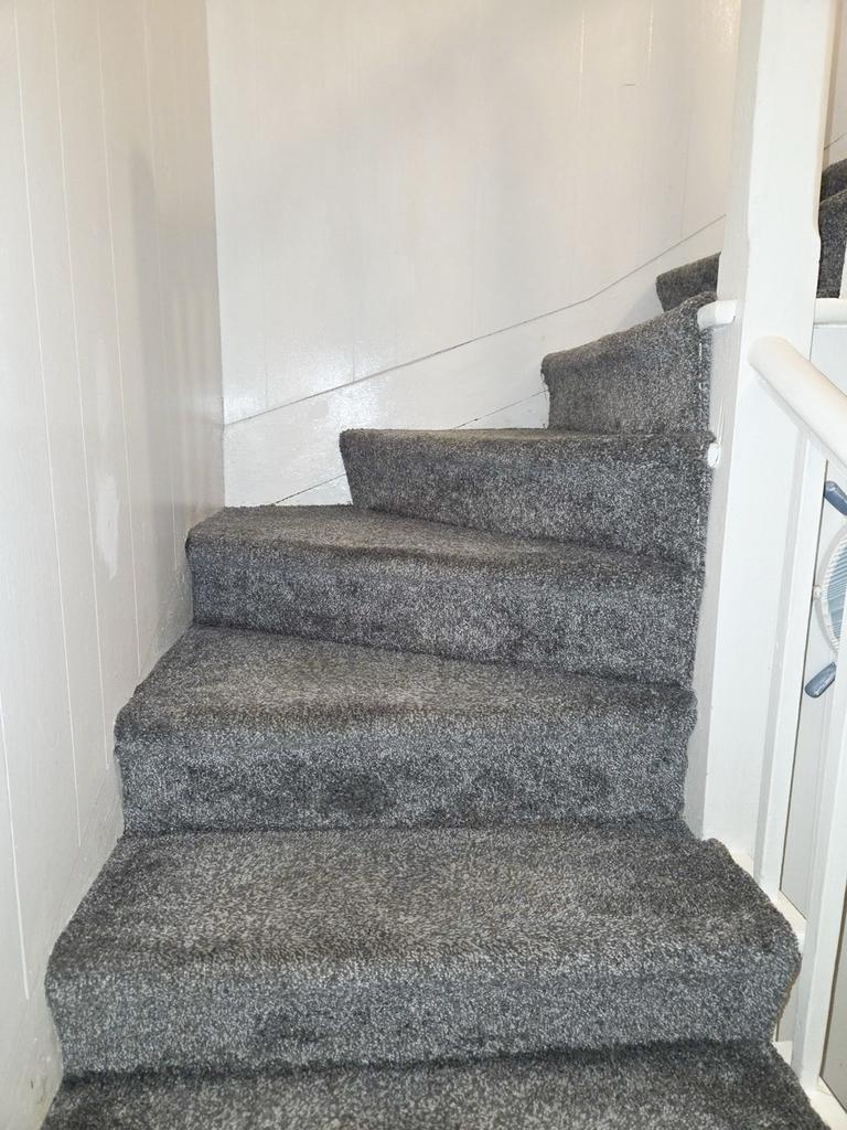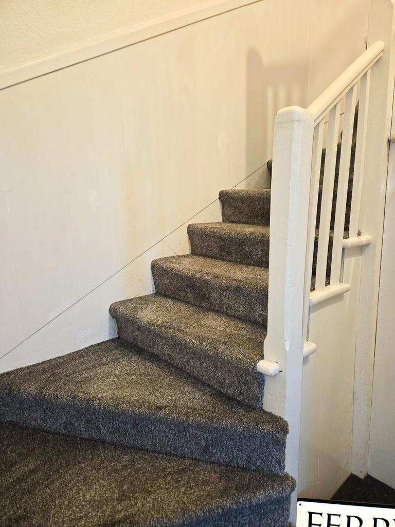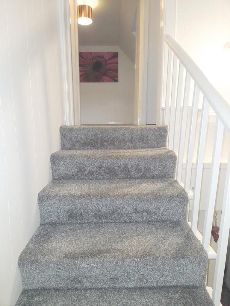 From hall up carpeted staircase to landing . . .
