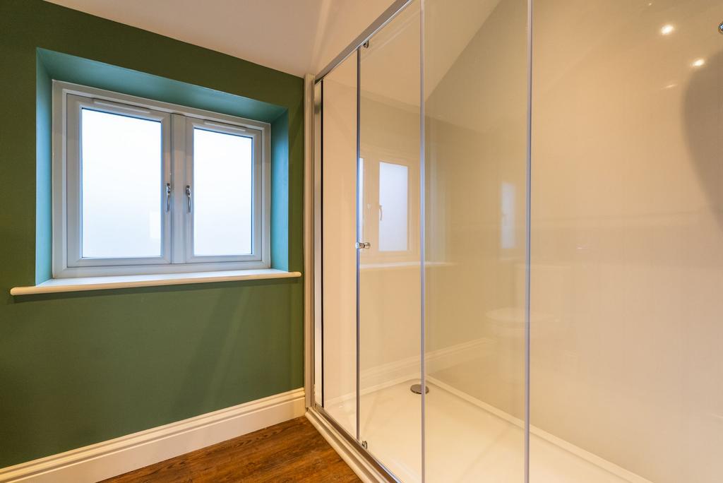 The living space on the ground floor consists of a superb open plan kitchen/dining and living room. The kitchen is of a high specification and includes quality units, integrated oven and hob. There is also a WC and storage/utility cupboard. The main room opens up to the elevated patio area and garden via the large sliding doors at the rear with great views of the surrounding countryside. On the first floor there are three double bedrooms (master ensuite) as well as the family bathroom. The ground floor is serviced by underfloor heating with radiators on the first floor.