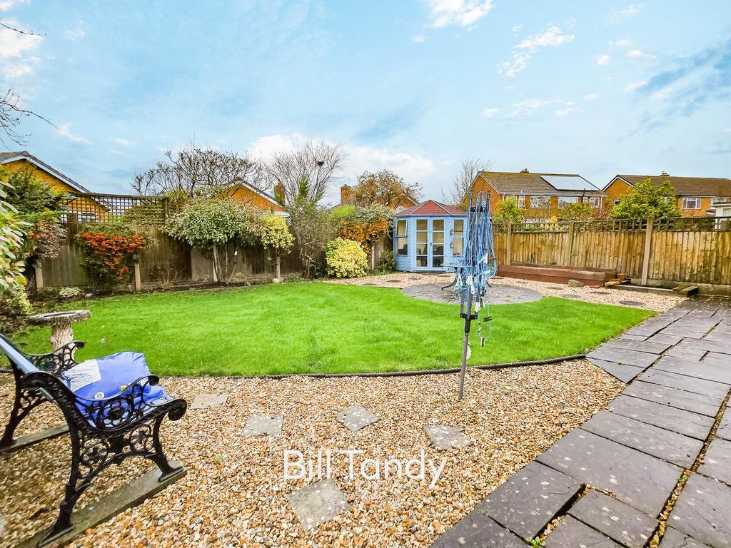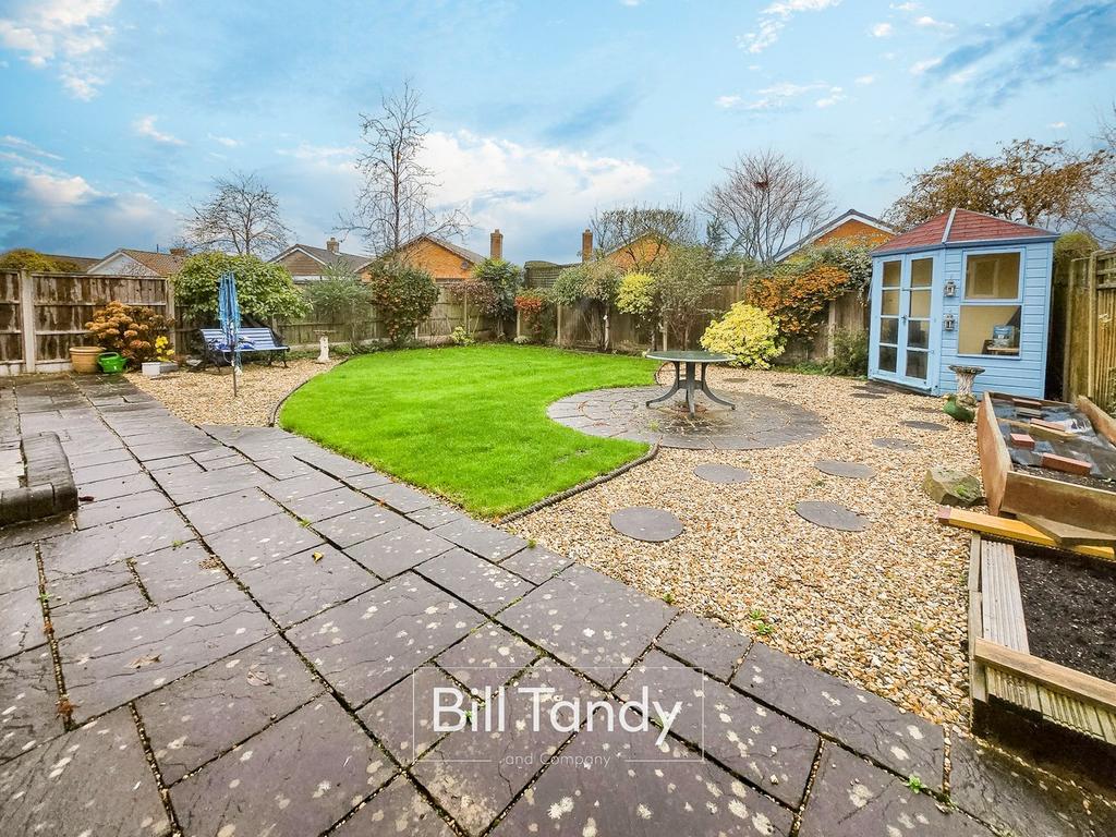 To the front of the property is a tarmac driveway with block paved border providing parking and leading to the garage. There are gates to each side of the property. Set to the rear of the property is a substantial paved patio space with gravelled and lawned garden beyond, corner summerhouse and herbaceous borders.