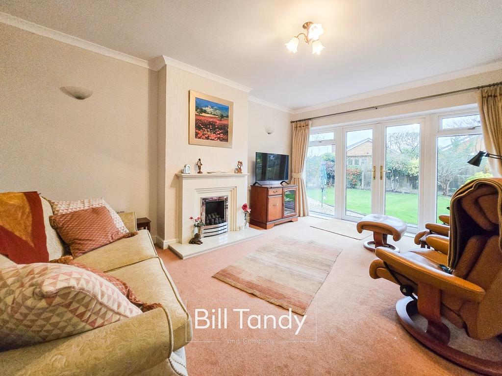 6.75m max x 4.86m max (22' 2" max x 15' 11" max) this superb sized open plan main reception room has double glazed French doors with windows either side providing access to the rear, further double glazed windows to front and side, two radiators and the feature and focal point of the room is the fireplace with a marble hearth, inset, surround and mantel above housing a contemporary flame effect gas fire. Door to: