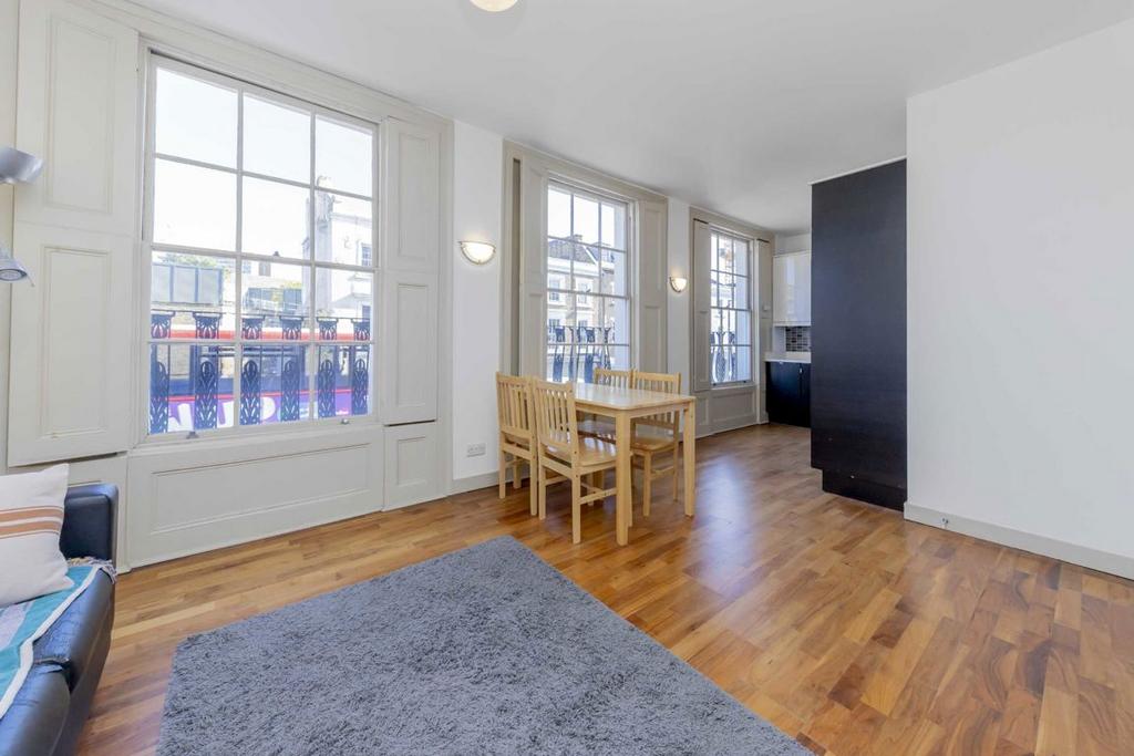 A spacious and bright two double bedroom apartment on the first floor of a Georgian conversion centrally located in the heart of Camden Town with partial views of the canal. The flat has wood floors, high ceilings, tall windows and a well equipped open plan kitchen.