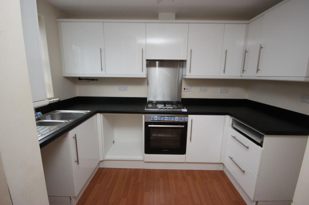 UPVC Double glazed window to the side elevation. Modern fitted kitchen offering a range of white high gloss, wall and base units with complementary work surfaces. Integrated gas hob, electric oven, extractor fan. Plumbing for automatic washing machine and space for fridge/freezer. Stainless steel one and half bowl sink unit with chrome mixer tap, built in matching wall cupboard housing combi boiler. Laminate Floor covering and ceiling point.