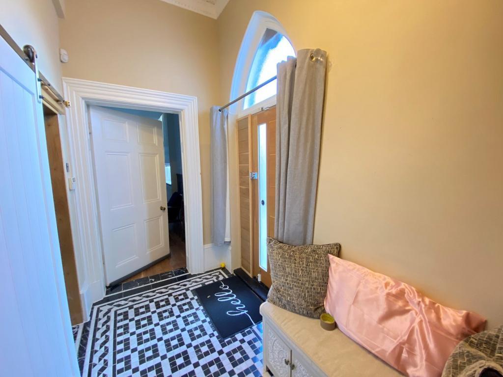 3.75m x 1.67m (12' 4" x 5' 6") Glazed timber door into:-