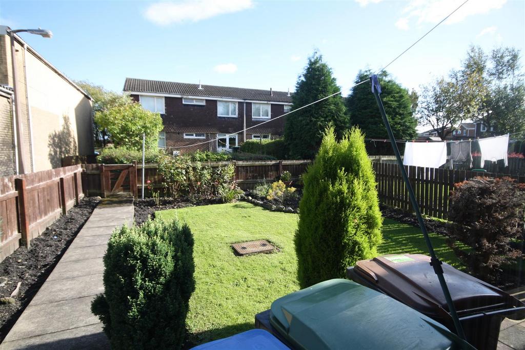 Externally - Well maintained rear garden, communal lawned area to the front, garage.