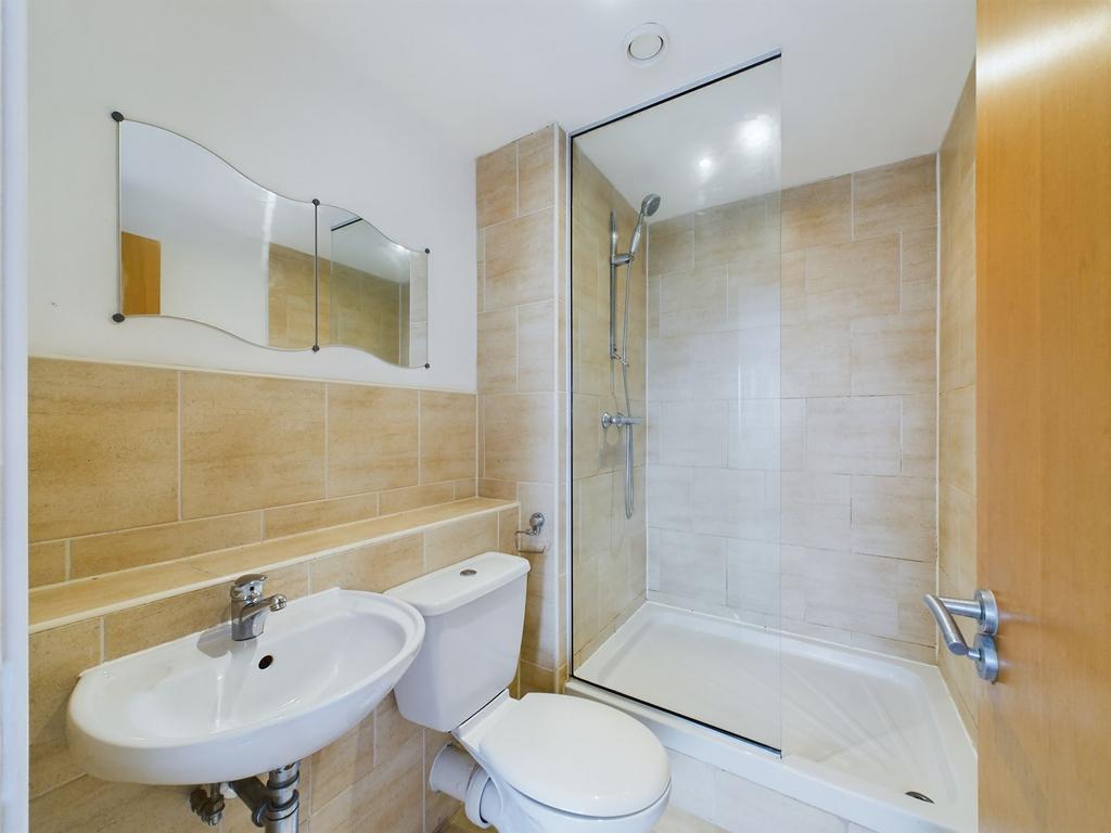 This modern apartment comprises of entrance hall with storage, bathroom with shower and bath, master bedroom with en-suite, double bedroom, open plan living room/ kitchen.