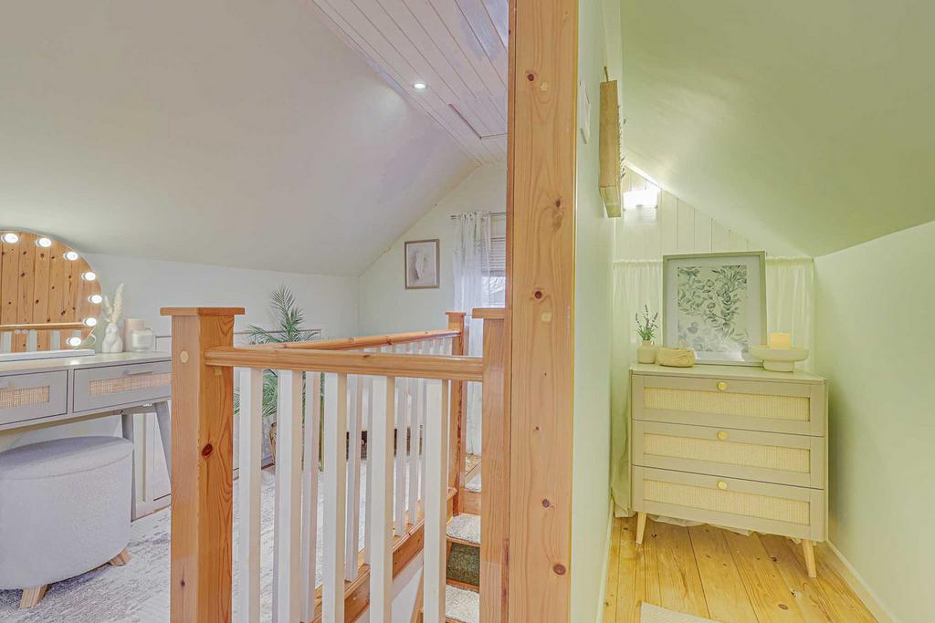 On the first floor you will find the loft room which is being used as a bedroom and has an area which is multi functional and can be used as an office space or dressing area. There is eaves storage on both sides of the room and a large storage area to the rear.