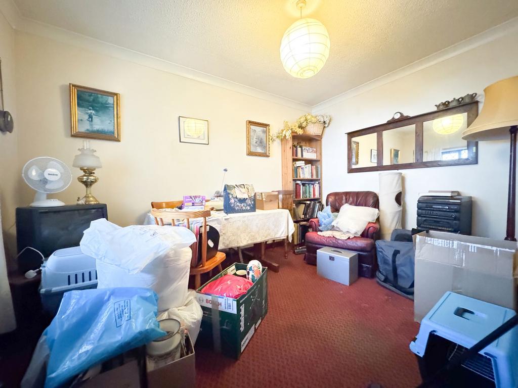 The spacious lounge/diner is a standout feature of the home, offering a bright and inviting living environment enhanced by dual-aspect windows and sliding patio doors that open directly onto the garden, creating an excellent sense of indoor-outdoor living. This well-proportioned room also discreetly incorporates the staircase behind a separating wall, leading to the first floor. Additional features include a single-panel radiator, TV point, and thermostat controls.