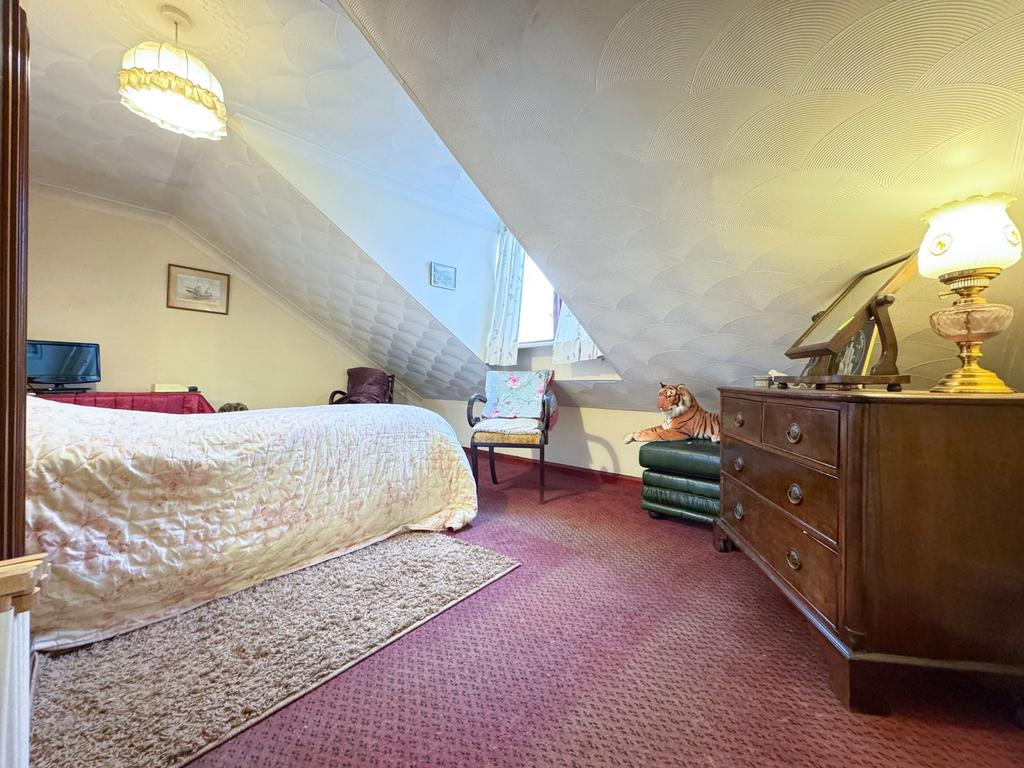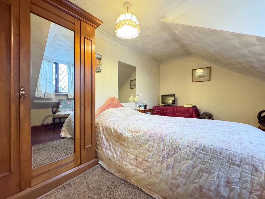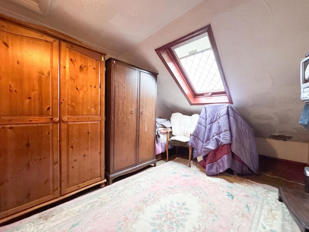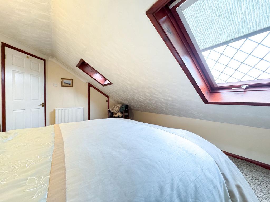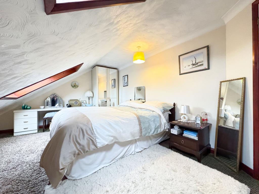 Bedroom Three follows the same theme of generous proportions and light-filled accommodation, featuring two Velux windows, a double-panel radiator, a TV point, and access to useful eaves storage.
