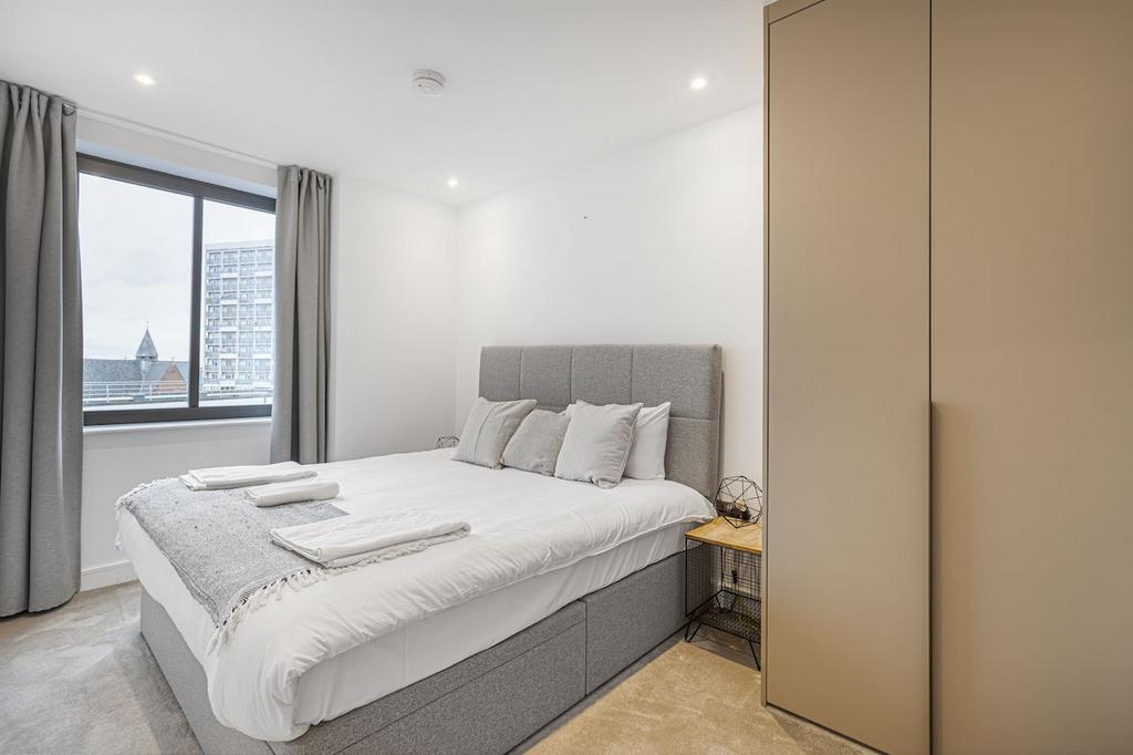 Discover our furnished three-bedroom flat in Vonder Shoreditch, only steps away from Hoxton station. The flat features an open-plan lounge and kitchen with floor-to-ceiling triple-glazed windows providing natural light with direct terrace access.