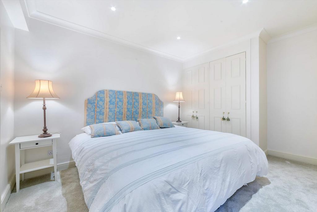 The lower ground floor provides three well-proportioned bedrooms. The principal bedroom features an en-suite bathroom, while the two further bedrooms are served by a sleek family bathroom. Practical storage solutions and a well-planned layout make the apartment particularly suitable for those seeking both elegance and functionality.
