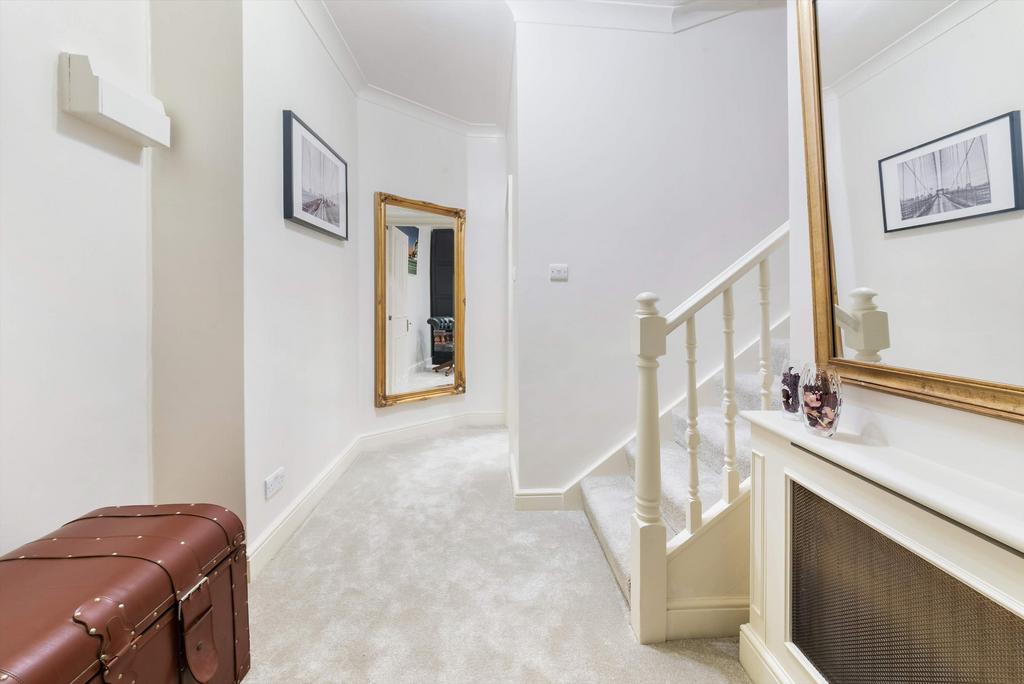 The ground floor offers superb lateral living space, comprising a reception room with tall sash windows and direct views toward Collingham Gardens. Kitchen/breakfast room, thoughtfully designed with ample storage and integrated appliances, creating a comfortable environment for both everyday living and entertaining.