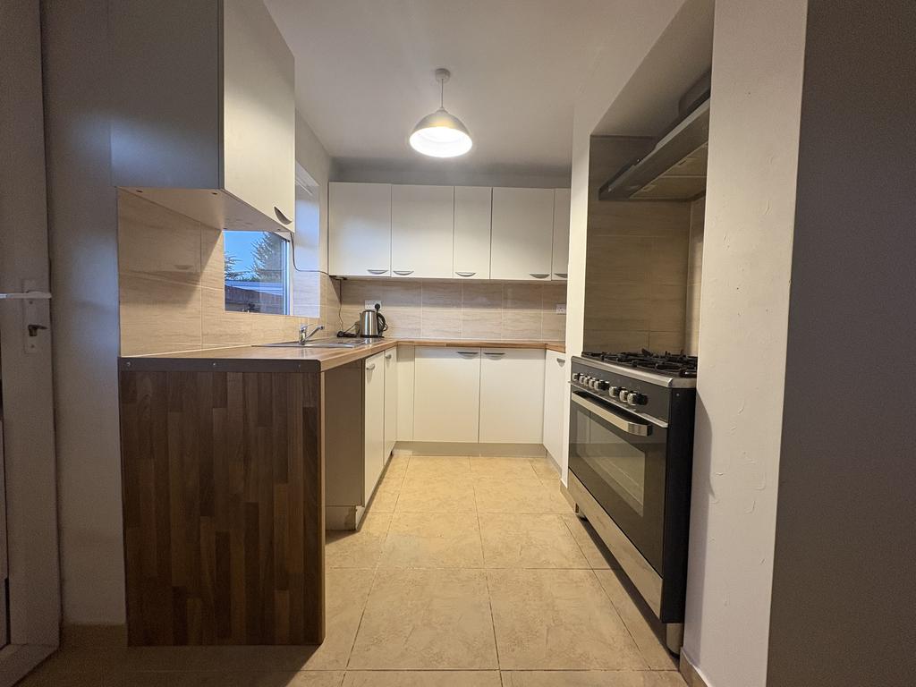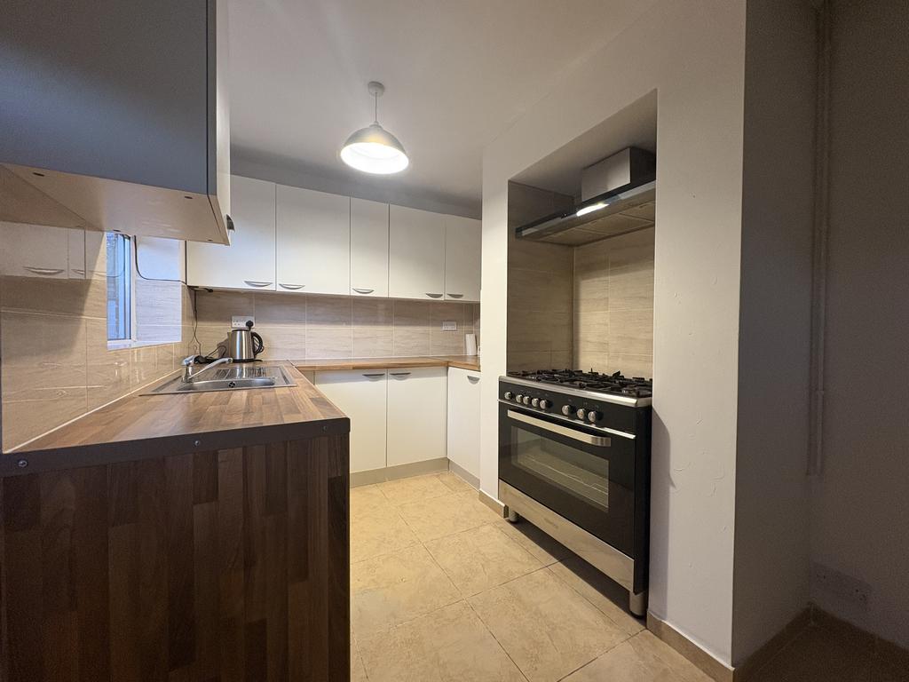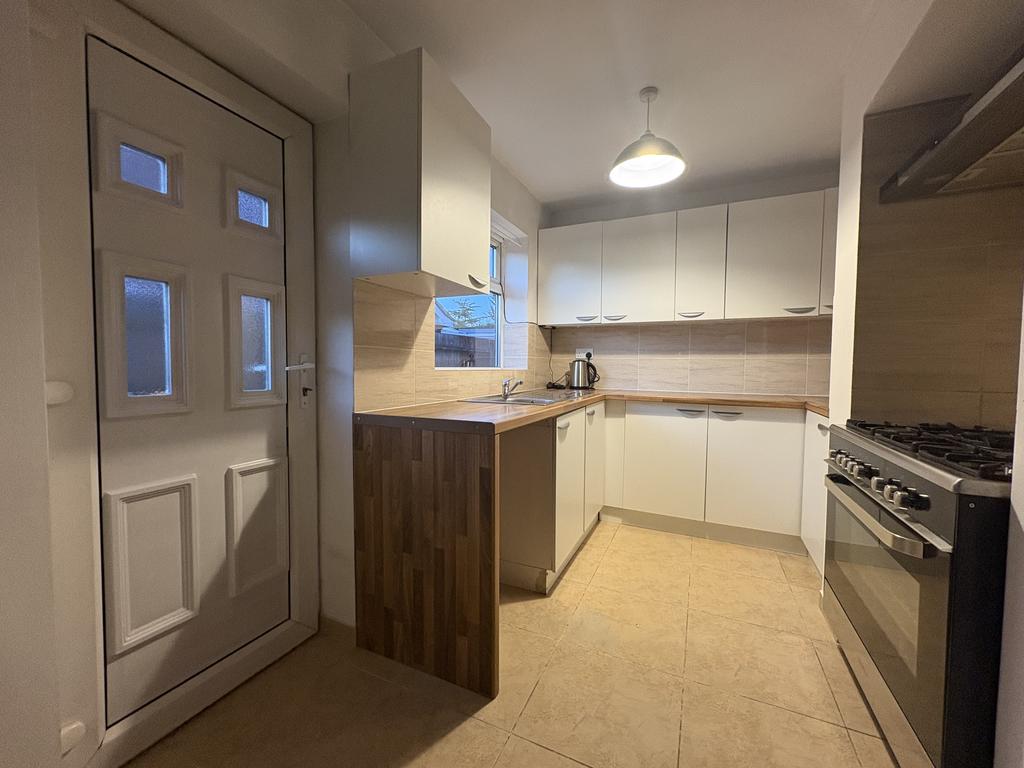 Fitted with a matching range of base and eye level units with worktop space over. Double glazed window to side. Door to side aspect. Tiled flooring. Space for washing machine. Space for fridge/freezer. Built in oven with extractor hood over.