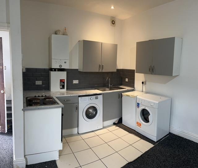 The flat offers a well-proportioned open plan kitchen with lounge and one double bedroom, tastefully furnished to create a comfortable living space. Large windows ensure plenty of natural light. On-street parking adds to the convenience for those with vehicles, and the property falls within Council Tax B, keeping annual costs reasonable.