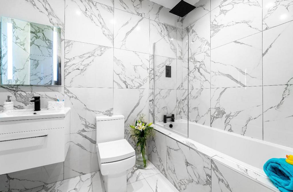 - Appliances such as integrated oven and hob, washer-dryer and tall fridge freezer with water dispenser and TV in bedroom;