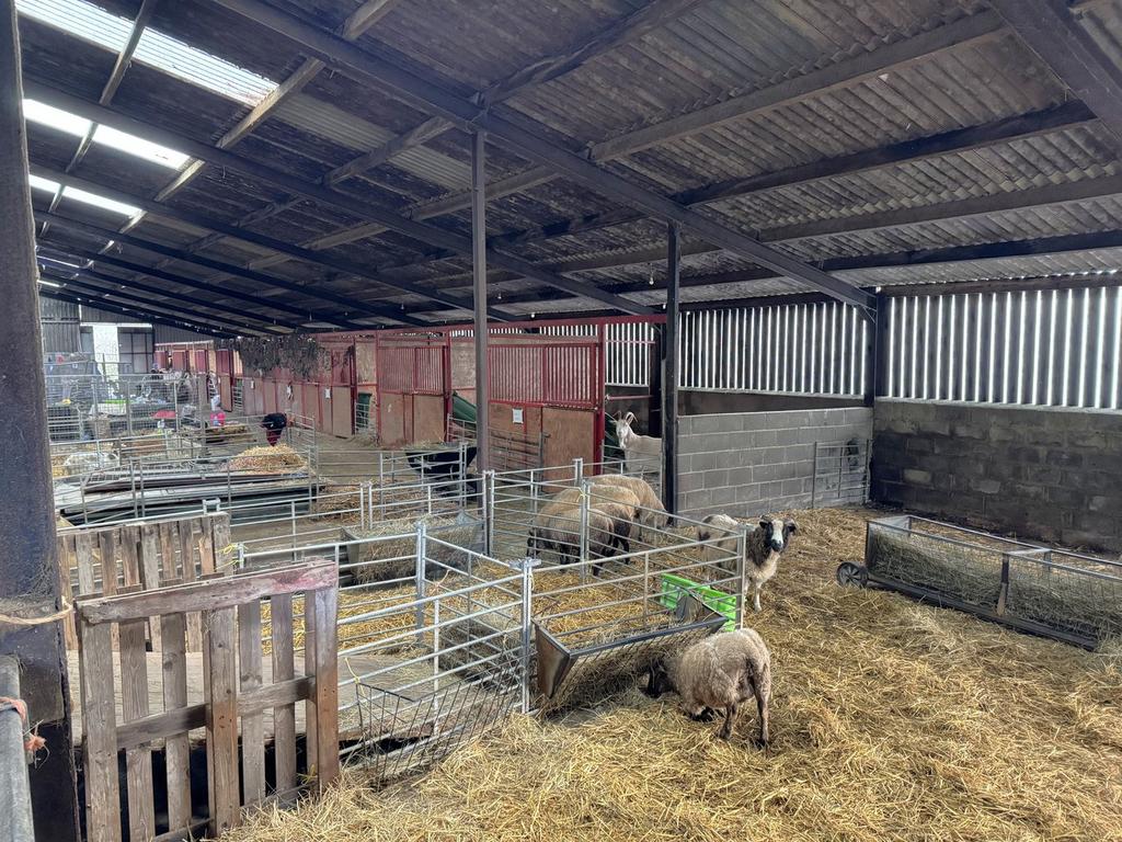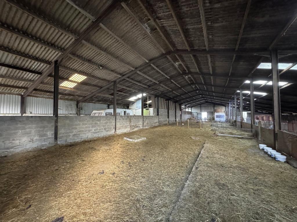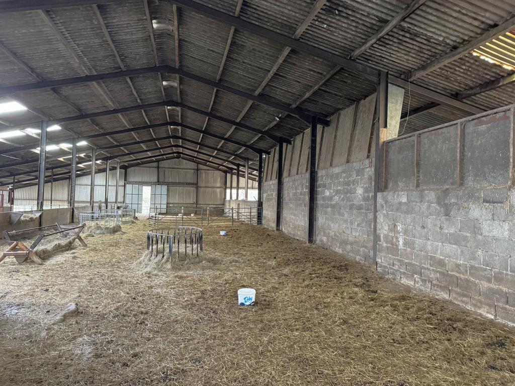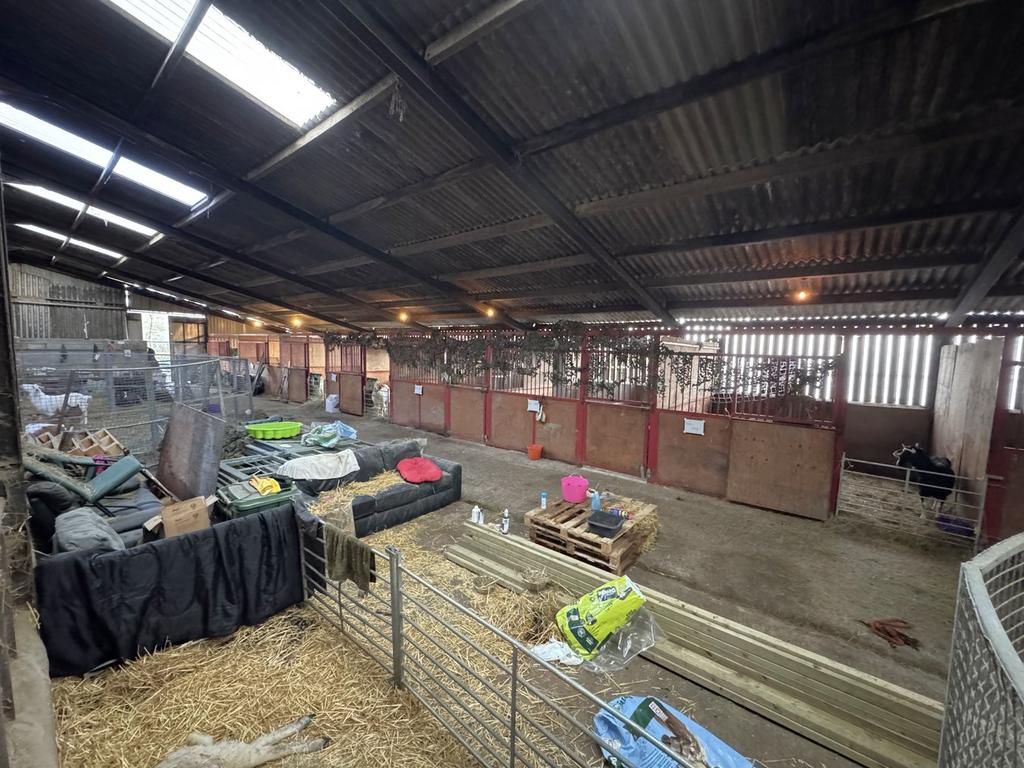 Substantial and versatile agricultural barn of steel portal frame construction, set beneath a corrugated roof and offering generous internal space with mostly concrete floor. 9 Internal stables, Kitchen area and feed room within. The barn is currently arranged with livestock pens and loose housing, making it well suited for agricultural use, particularly for sheep or cattle, with solid block walls to part height and good natural ventilation throughout. Offering excellent potential for continued farming use or adaptation (Subject to planning).