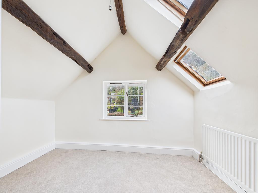 Vaulted ceiling, exposed timbers, with rear facing window complimented by two roof windows. Radiator with TRV. Ideal as a dressing room, office or nursery.