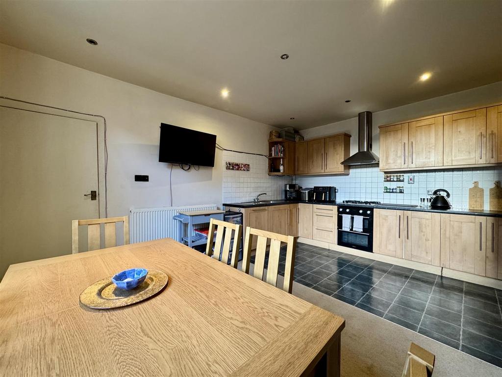 Dining Kitchen - 4.95m x 4.37m (16'3 x 14'4) - A most spacious dining kitchen having a good amount of natural light and generous space for dining and if needed living or study space. The kitchen area being fitted with a comprehensive range of beech effect wall, base and drawer units with tiled splashbacks, integrated electric oven, four ring gas hob with extractor hood over, integrated dishwasher, recessed spotlights to the ceiling and Upvc double glazed window to the front.