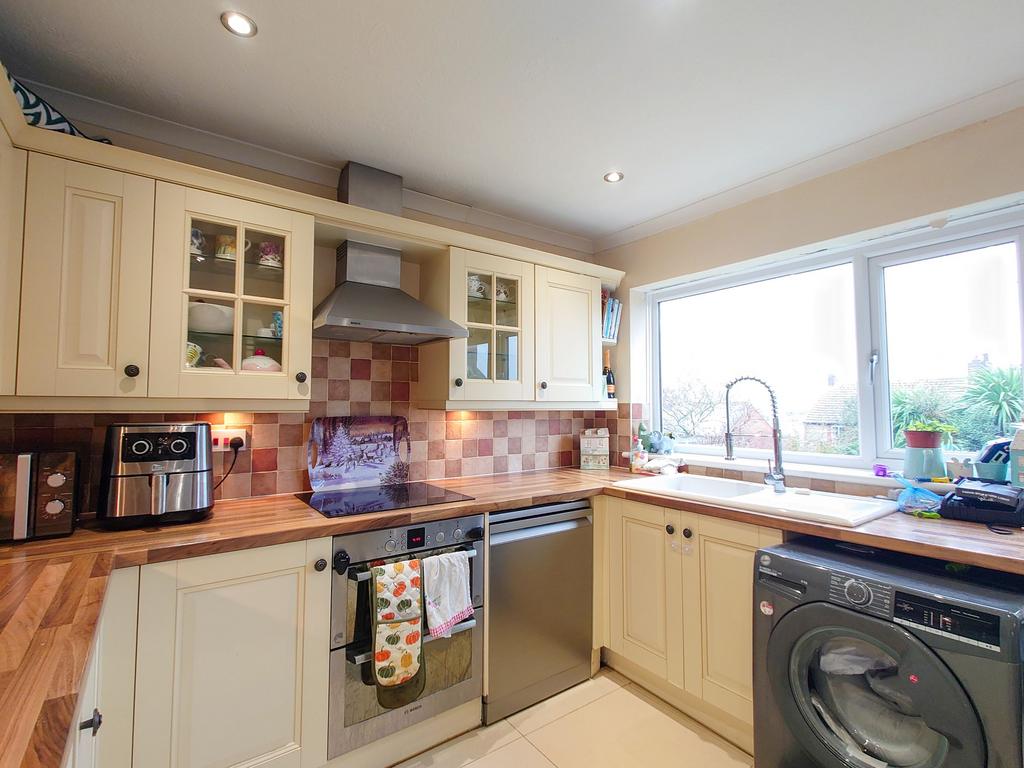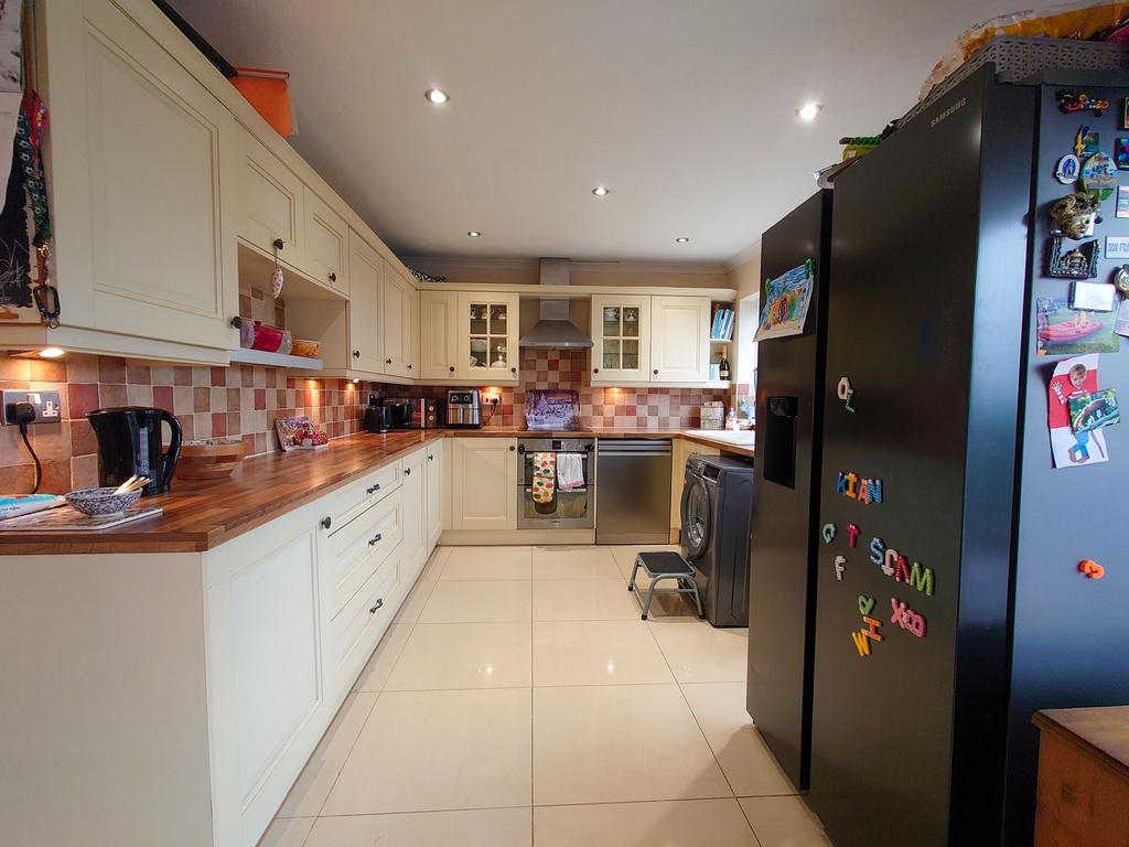 Modern country cottage style fitted kitchen with a large range of floor and wall unit & drawers. Tiled splashback.