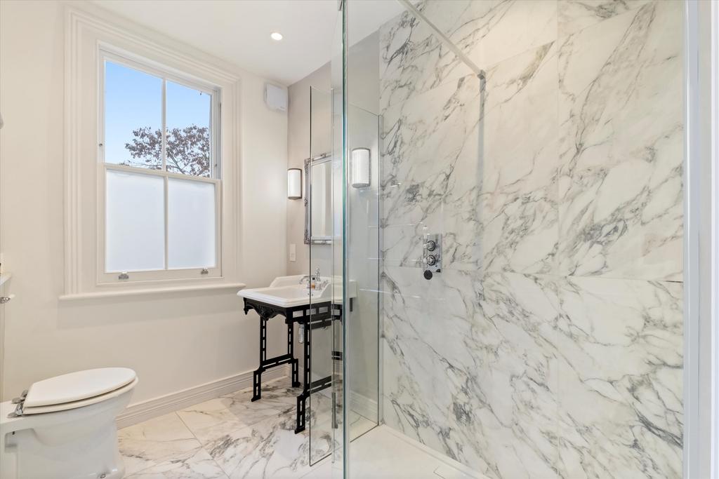 Recently refurbished to a high standard, Lisgar Terrace seamlessly blends contemporary design with retained period features. The home enjoys excellent natural light throughout and offers well-balanced, elegant living spaces. An impressive entrance hallway leads to three refined reception rooms featuring engineered wood flooring, original fireplaces and classic cornicing. Underfloor heating runs throughout the lower floor, providing discreet modern comfort.