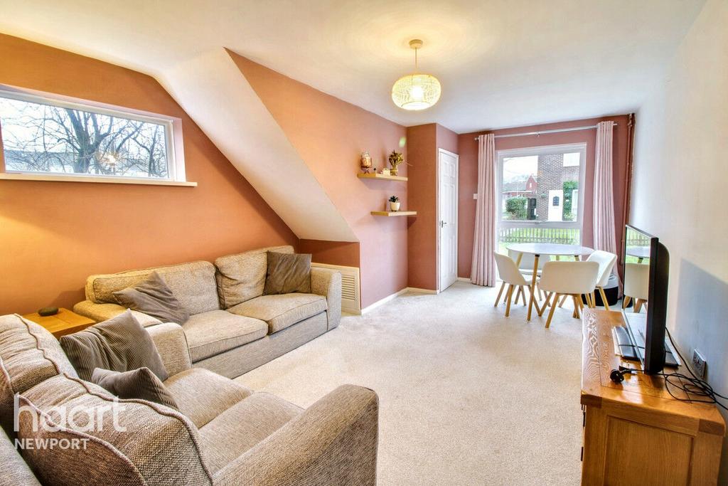 The living room is carpeted, roomy enough to have a sitting area and a dining area, and has been painted with a warm terracotta colour adjacent to the lighter wall. The kitchen has stylish subway tiles, a minty green theme, and hob and oven built in. The garden benefits from lawn space and decking.