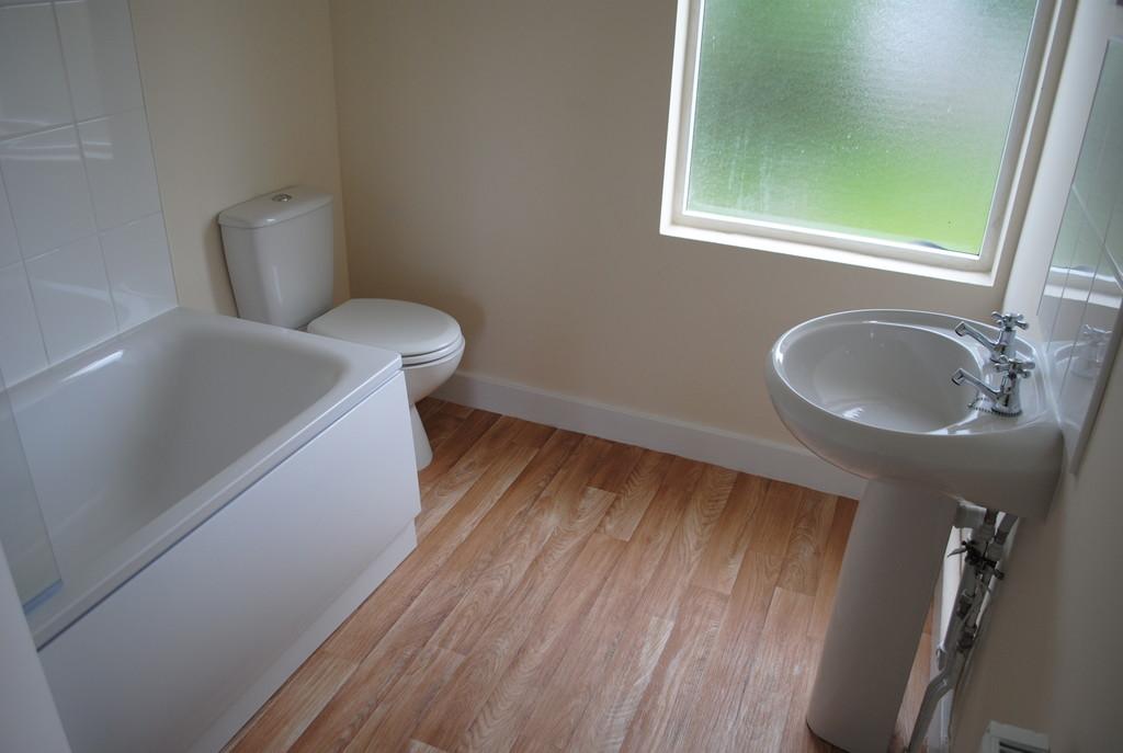 BATHROOM 8' x 6' 6" (2.44m x 1.98m) With a modern suite comprising panelled bath with shower over, pedestal wash hand basin and low level WC