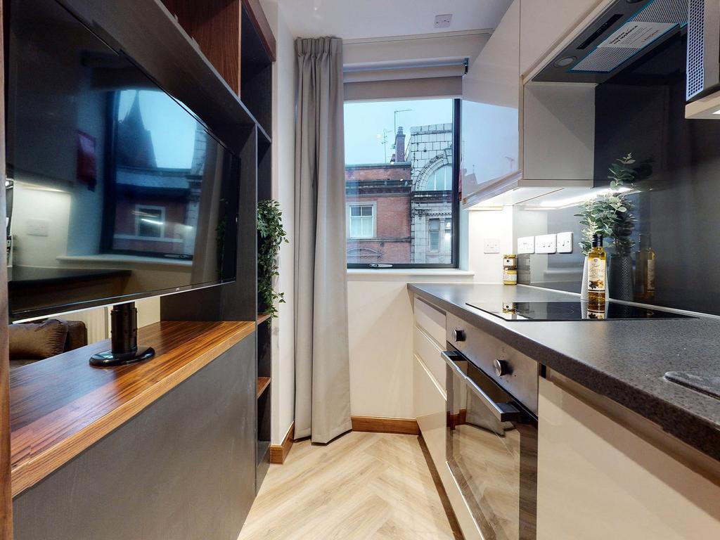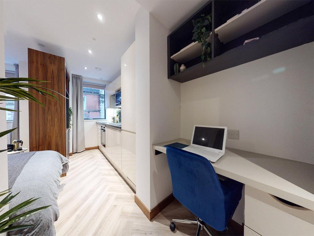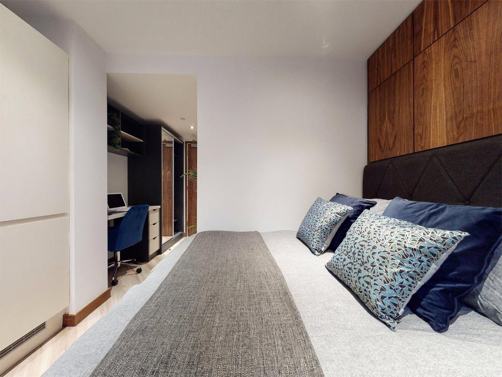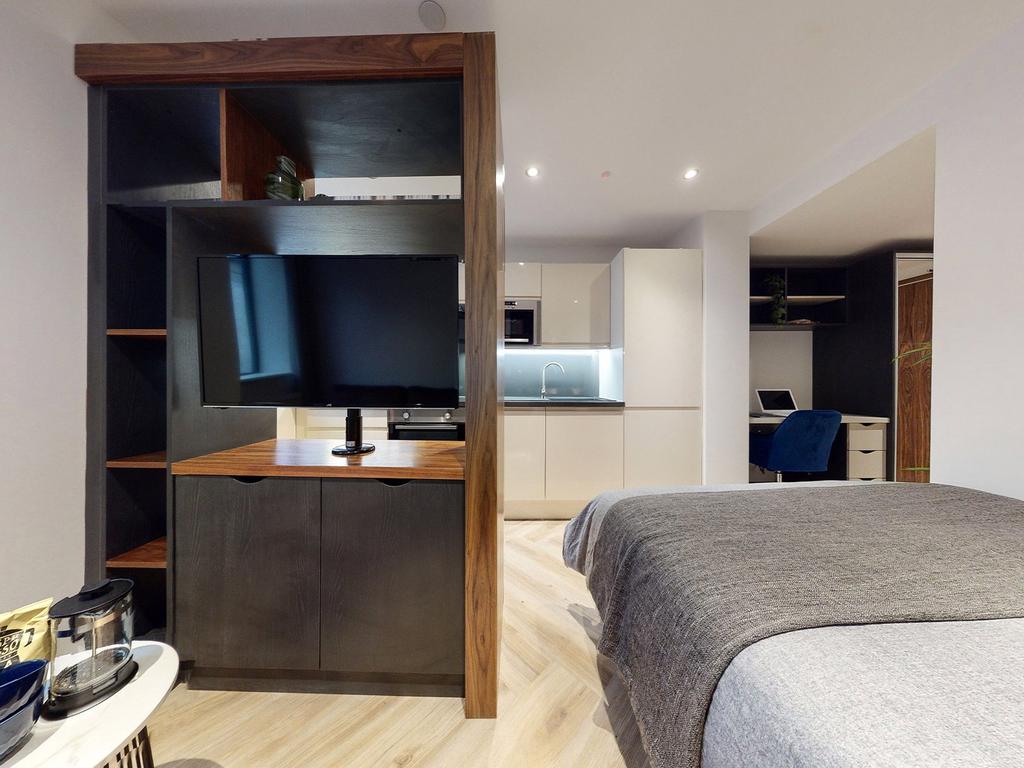 Fully furnished with high-end furniture and top-of-the-range appliances, the finish is exceptional, giving it a bright, modern feel throughout. The 360 degree rotating smart TV, under bed storage, and stylish flooring are just some of the features that make this apartment so unique. Combined with the comfy sofa and double bed it’s the perfect place to unwind and relax. It also features a desk and padded swivel chair, great for studying or working at home.