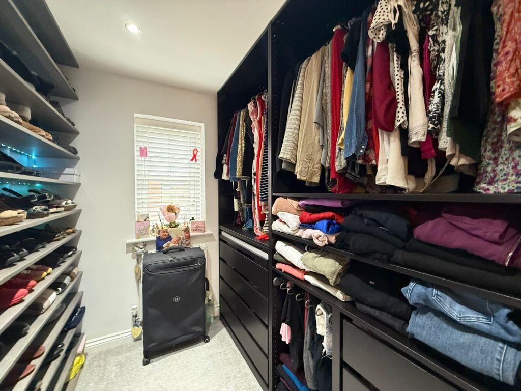 Currently utilised as a dressing room, fitted with dark wood grain storage furniture and additional mirrored wardrobes. Central heating radiator and uPVC double glazed window to the front elevation.
