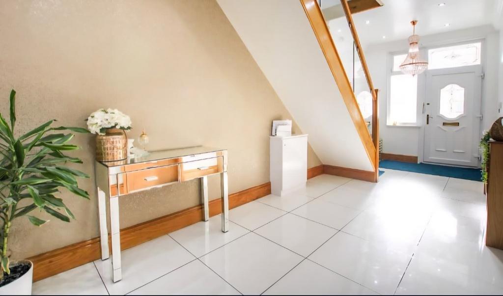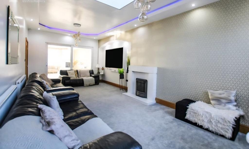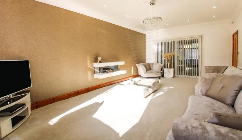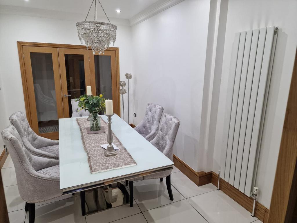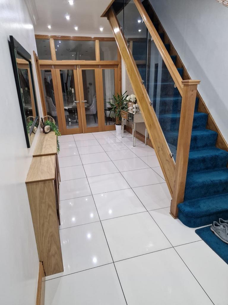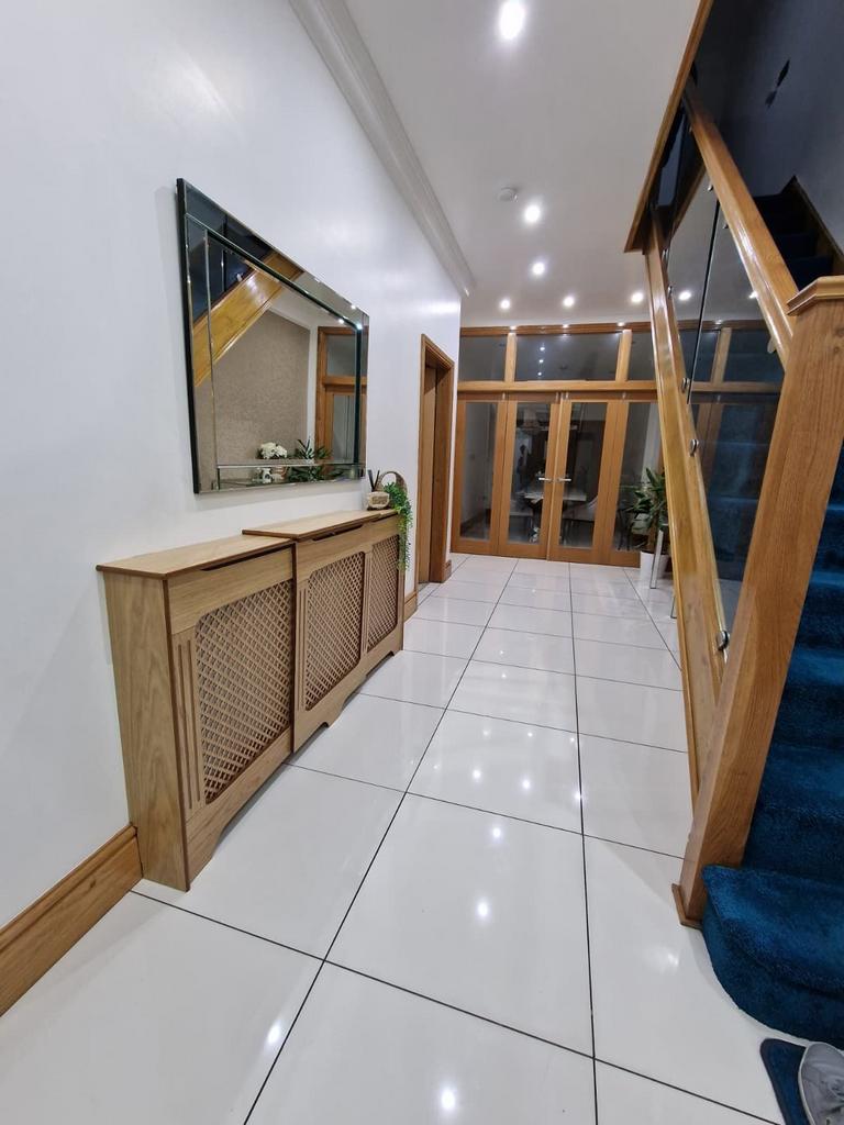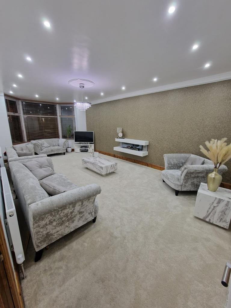 High quality fixtures and fitting throughout, the property boasts a large driveway, grand entrance hallway ;leading to 2 spacious Reception Area, a further Dining Area and a spacious Kitchen with storage area.