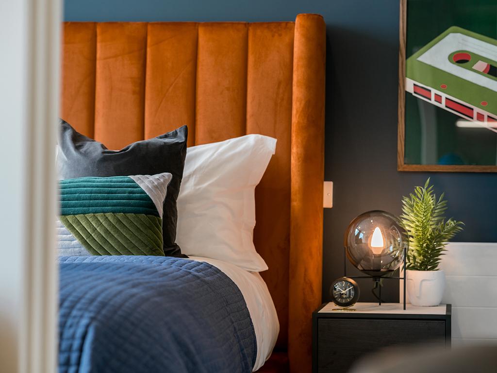 Stylish bedrooms including bespoke fitted wardrobes with full height mirror, hanging rail and storage. Ottoman bed with storage, feature headboard and 1,000 individual pocket sprung mattress made from natural materials and marble effect bedside tables.