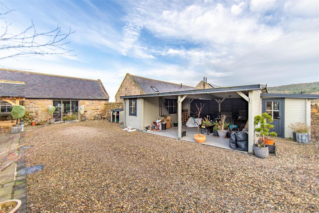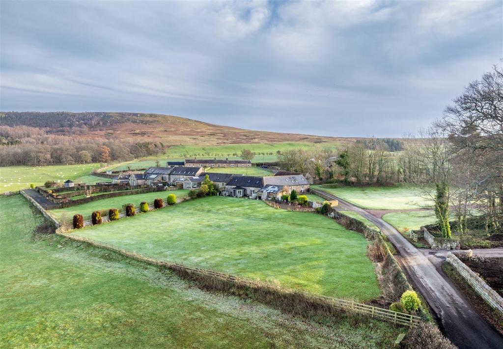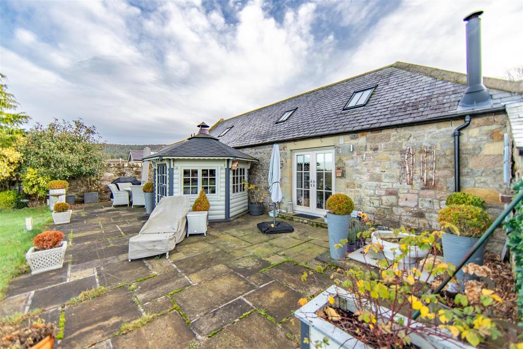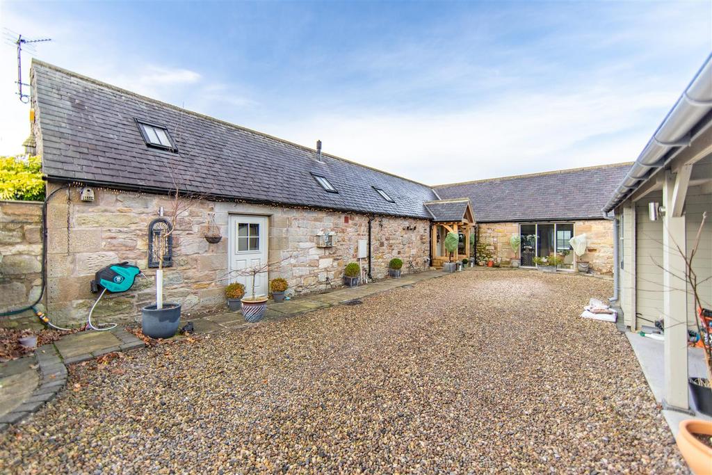 Stylish Stone Built Barn Conversion Offering an Exceptional Countryside Position with Outstanding Open Aspect Views Towards The Cheviot Hills, Boasting an Impressive 42ft Open Plan Kitchen/Dining & Living Space with Three Double Bedrooms, Bathroom & En-Suite, Extensive Lawned Gardens, Entertaining Terrace plus Enclosed Courtyard with Car Port, Double Garage/Workshop and Store.