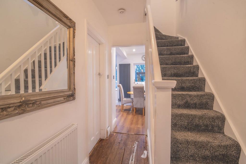 Upstairs, the property continues to impress with three well-proportioned bedrooms arranged off a central landing. The main bedroom sits at the front, benefiting from another charming bay window that adds character and a bright, airy feel. The second bedroom overlooks the rear garden and offers excellent versatility for a double room, guest space, or additional family accommodation. The third bedroom provides the ideal setting for a nursery, dedicated home office, or cosy single room. Completing the first floor is a modern family bathroom, finished with contemporary fittings and designed to serve the household with ease.
