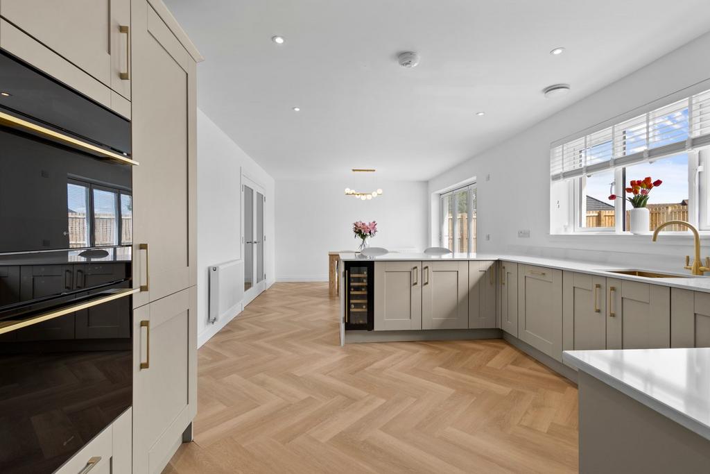 9' 4" x 11' 5" (2.84m x 3.48m) Modern fully fitted kitchen complete with integrated appliances including four zone induction hob, oven and extractor, plumbing and space for a washing machine, one and a half bowl sink with tap, practical USB charger socket.