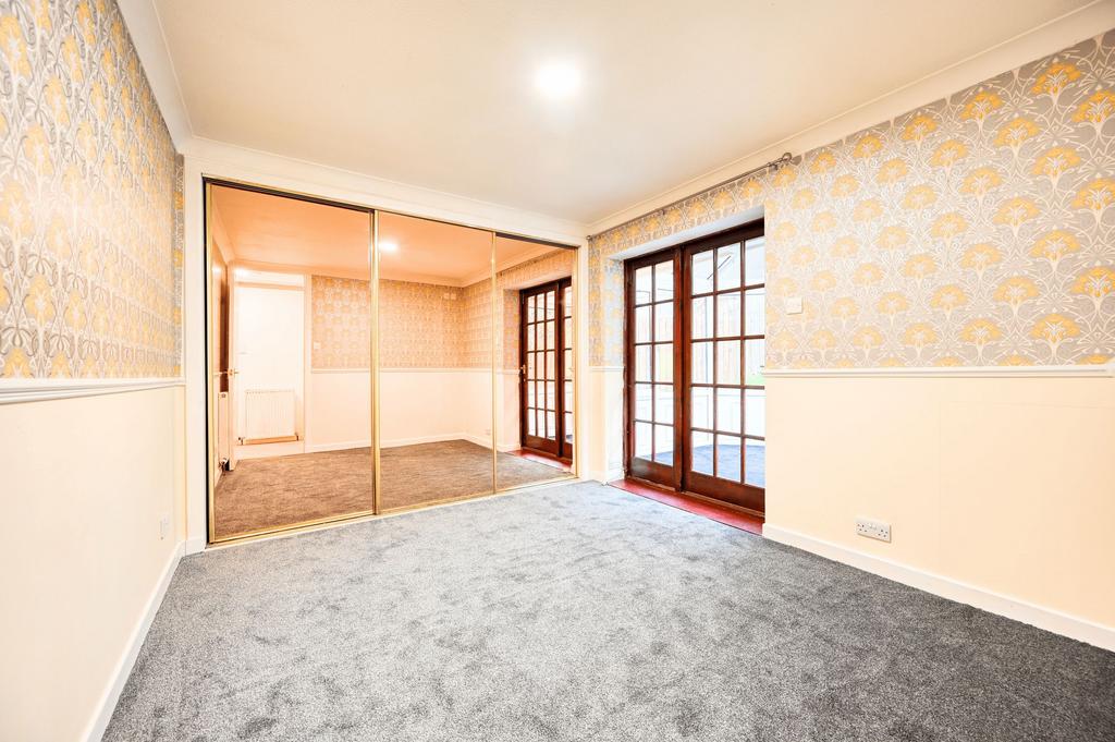 There are two well-proportioned bedrooms, one of the bedrooms benefits from fitted mirrored wardrobes and glazed doors leading through to the sunroom — a particularly attractive feature for retirees — which enjoys views over the garden and provides a tranquil space to relax throughout the year. From here, doors open directly onto the patio, offering easy access to the outdoors. The bathroom is fitted with a white three-piece suite, including an electric shower over the bath.