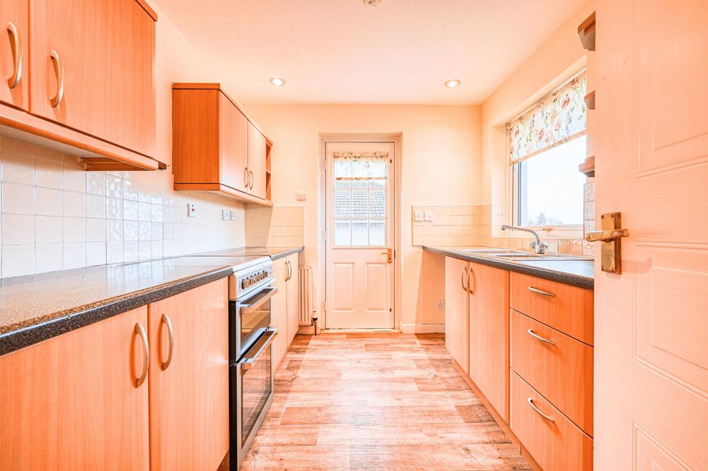 The well-equipped kitchen offers a good range of base and wall units with complementary worktops and splashbacks, along with a free-standing electric cooker and space for additional appliances. Positioned conveniently within the home, the kitchen provides a practical and functional layout suited to everyday living.