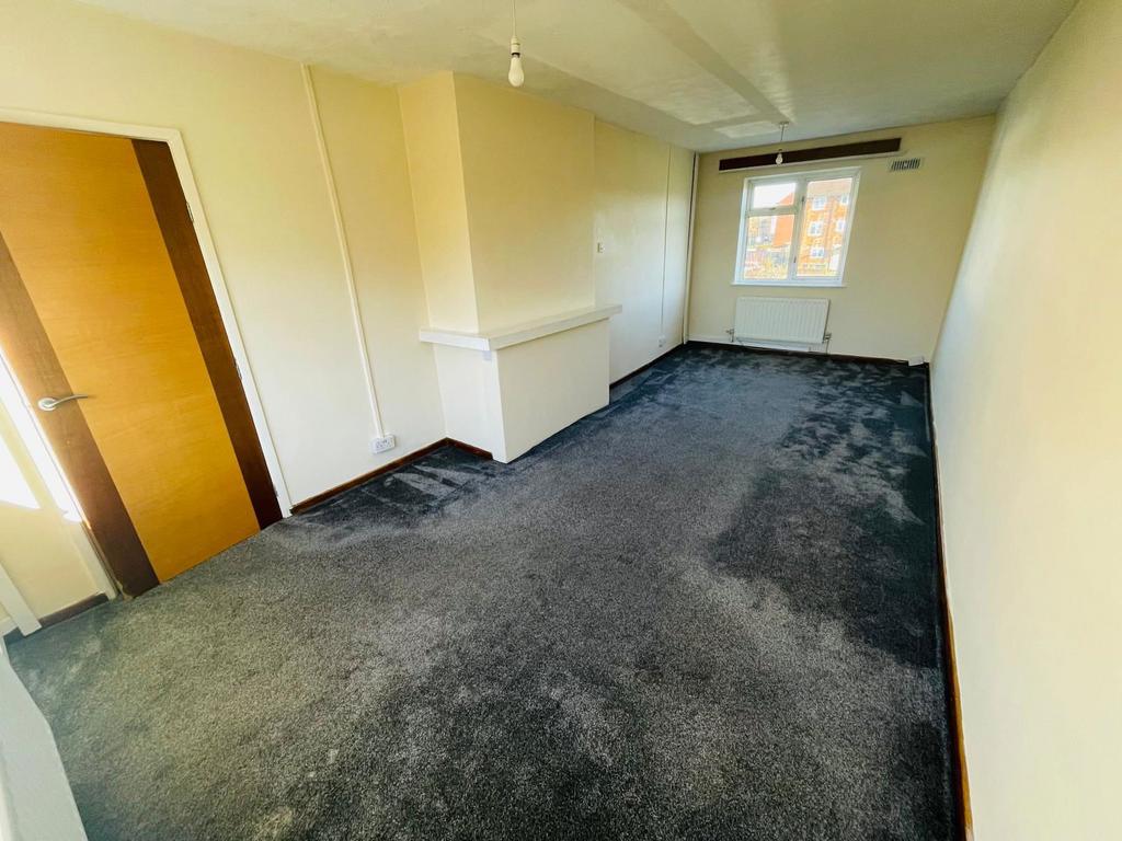 A spacious double bedroom with single-glazed window to the rear, central heating radiator, and door to the landing.